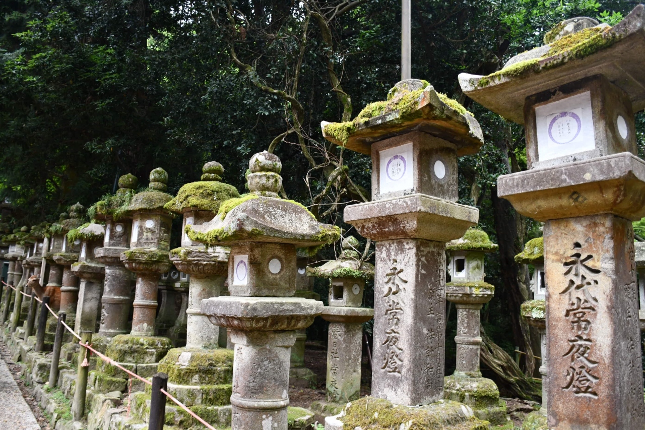走り梅雨のように小雨が降るなか、春日大社に参拝してまいりました。摂社や末社の一五社巡りなど、広い境内は短時間では行き尽くせません。ご神鹿は春日大社のお遣わし、そこここで愛嬌を振りまいておりました。若草山周辺も修学旅行生で一杯でした。