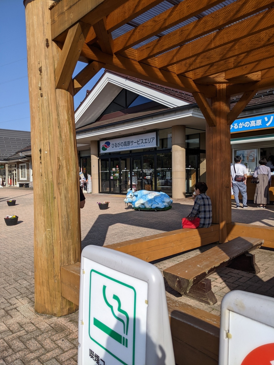 下りもそうでしたが、トイレ含めて全体的に綺麗です。お土産も充実してます。夕方になると品薄状態の物もありましたが。何故か青い牛のオブジェがドンと入口にあり、勝手にテンションを上げていました。中のレストランメニューは同じなのか券売機でした。ここでもやはり明宝ハム明方ハム系フランクフルトをおすすめします!外のソフトクリームもかなり美味しそうでした。