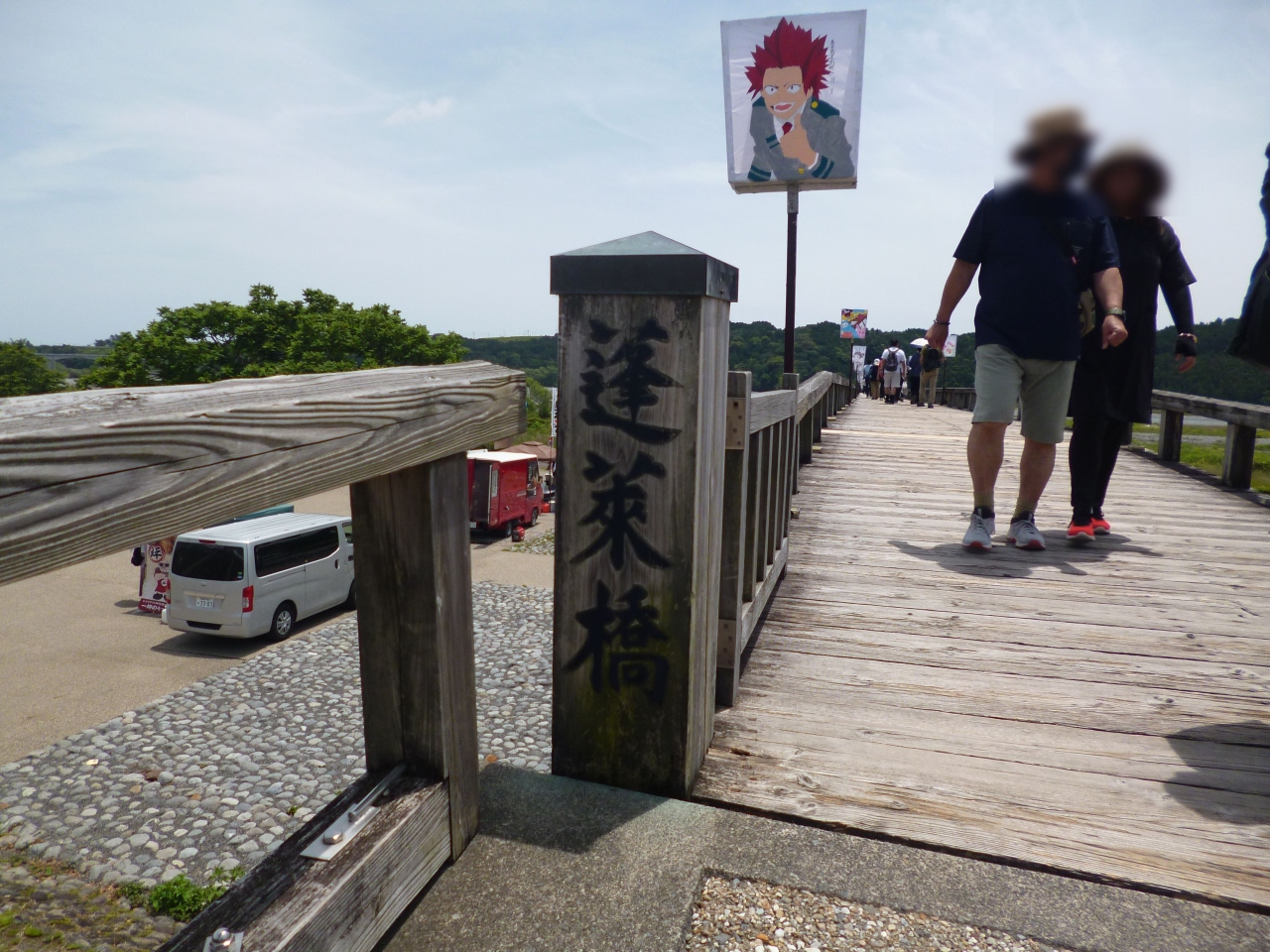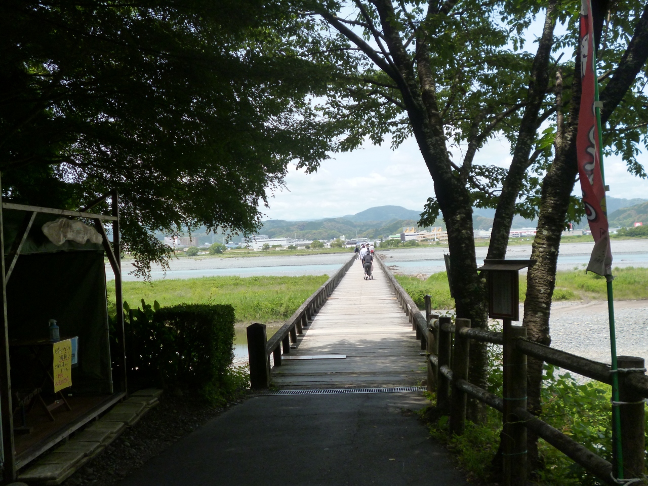 木造なので、途中ギシギシするところもあり、台風で橋脚が流されてしまったこともあります。風も強いので帽子がとばないように要注意です。