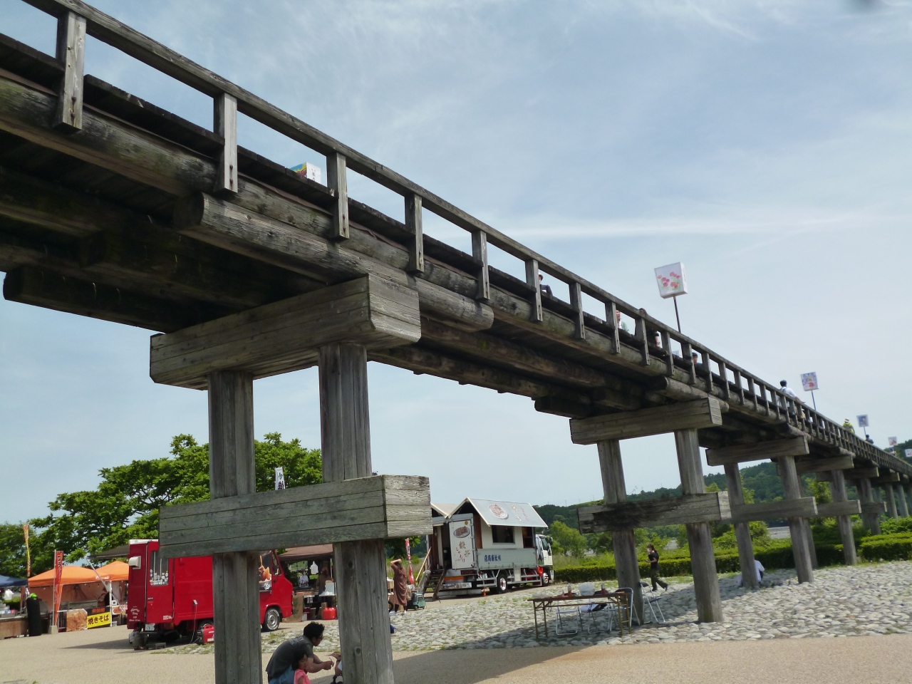 ドラマや映画のロケによく使われる、世界一長い木造歩道橋、通行料を取る「賃取橋」でもあります。