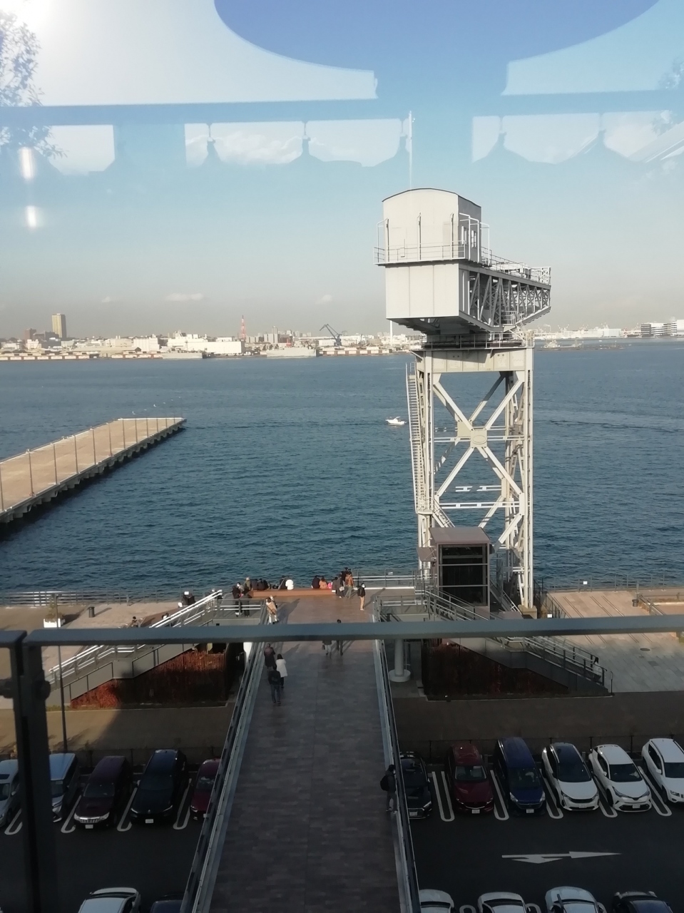 商業施設の横浜ハンマーヘッドとホテルに隣接して巨大なクレーンがあるエリア。横浜らしい風景が見られます。