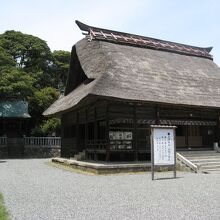 JR糸魚川駅のアルプス口(南口)から歩いて8分程のところに鎮座されています。12代景行天皇の御代の創建とされる歴史ある神社です。ご本殿は茅葺でとても重厚な感じで、その奥に奴奈川神社のご本殿も鎮座されています。 大きな木々に囲まれた境内は静かで凛とした雰囲気が漂っていました。