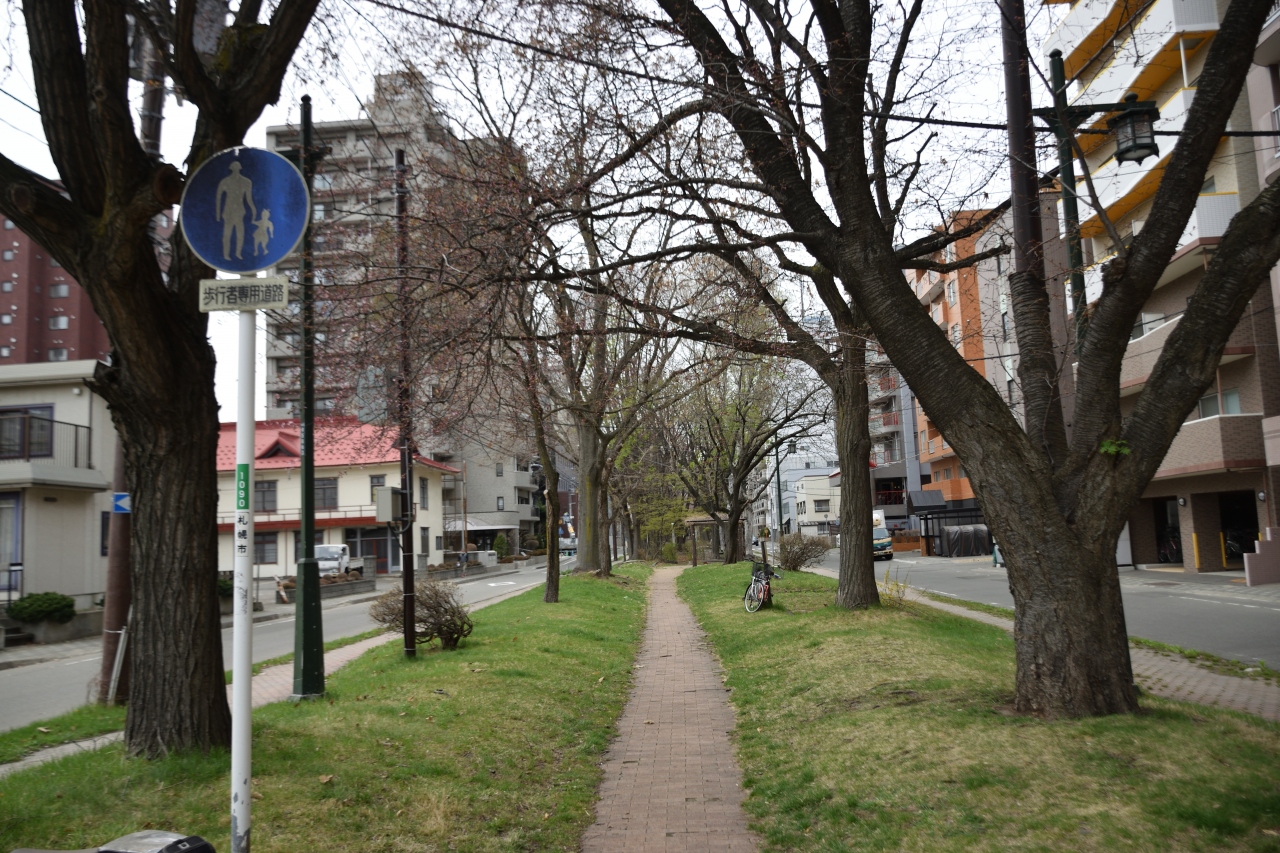 中央分離帯が公園になっており、その両側を上下線の自動車道がそれぞれ一方通行に走る設計が同じとしてミニ大通公園と名付けられています。公園部分は狭いですが、ベンチなども設置されており、公園として利用することはできます。