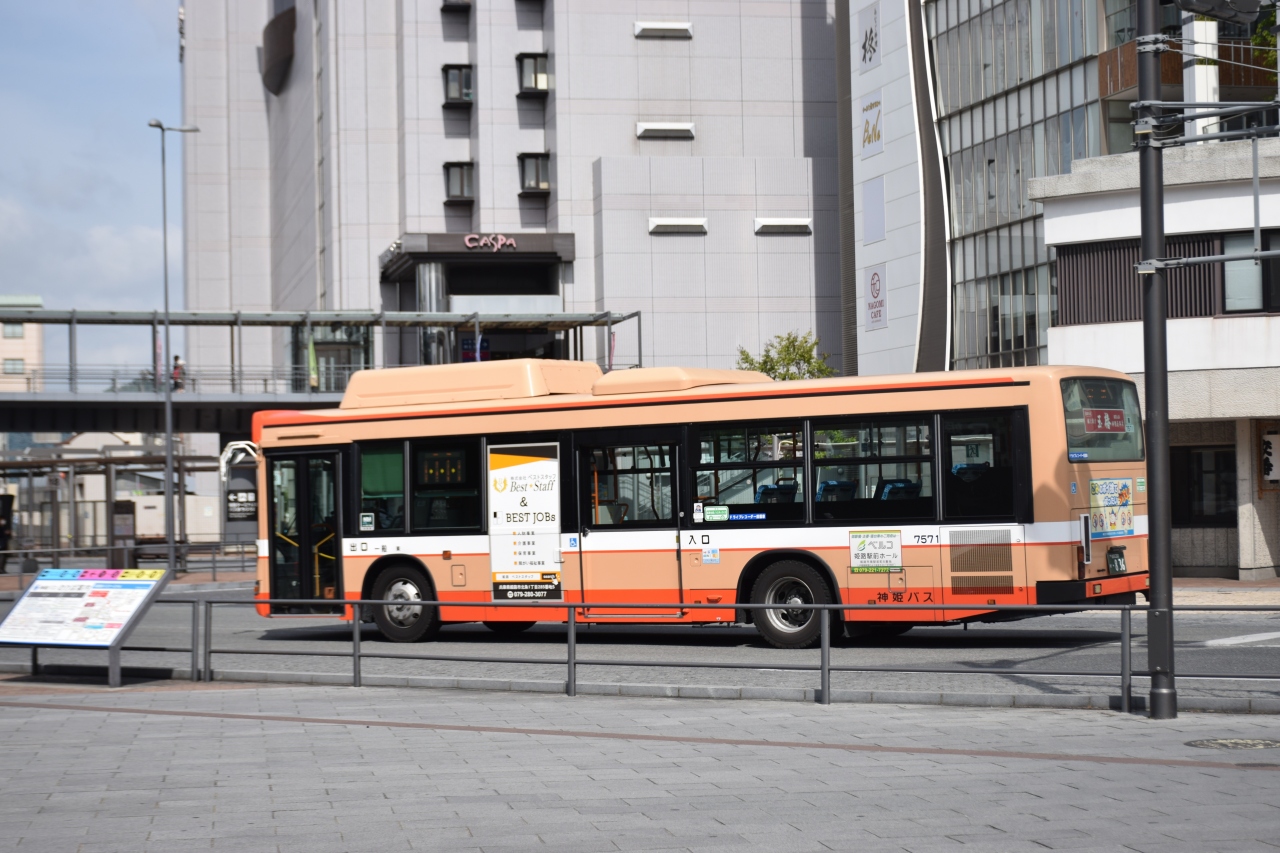 姫路市内を走る路線バスです。姫路はJR線や新幹線、山陽電鉄などが乗り入れるターミナル駅です。市内の各地にアクセスするにはバスがおすすめです。路線バスは市内各地を網羅しており、本数も多く便利に活用できます。