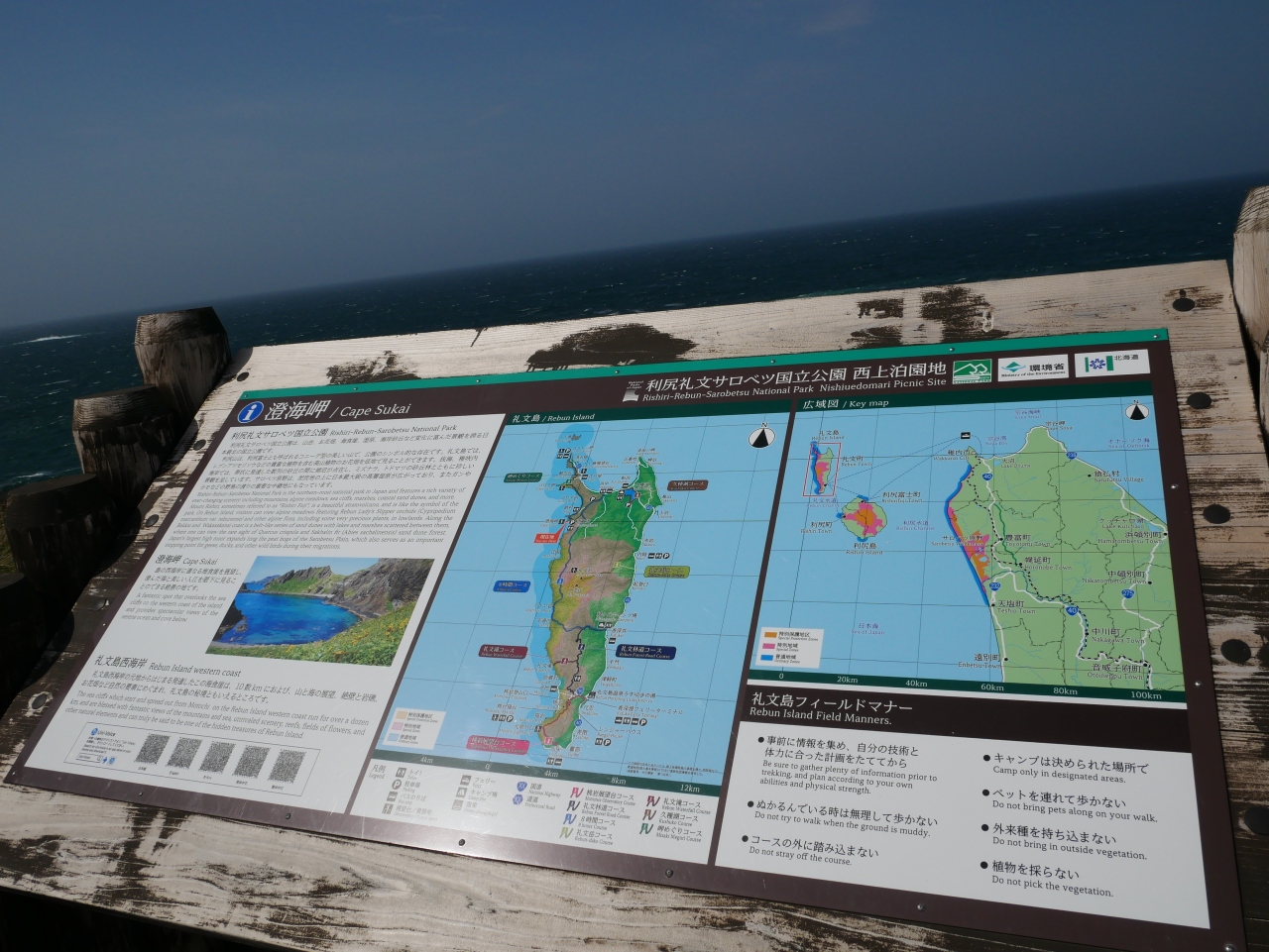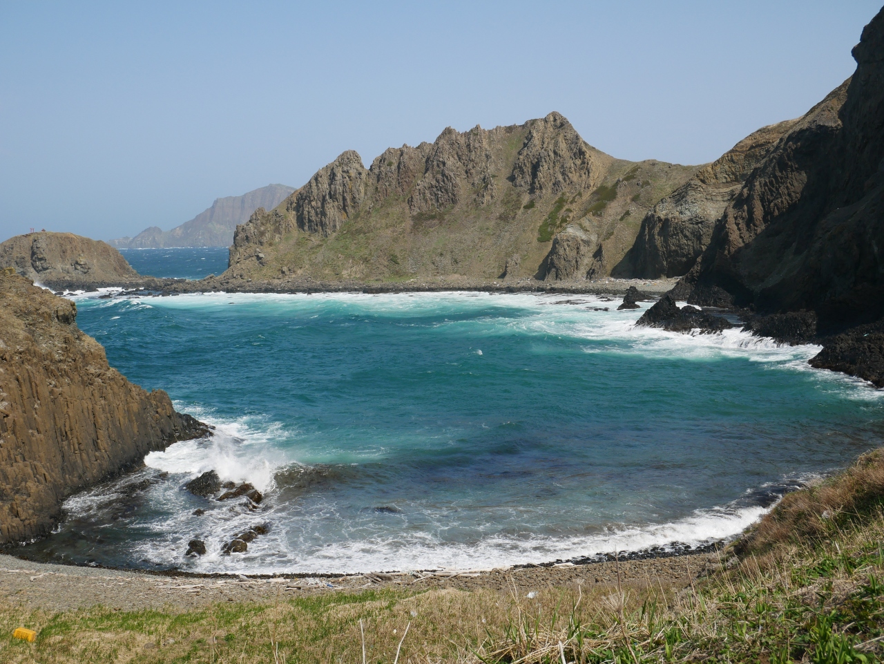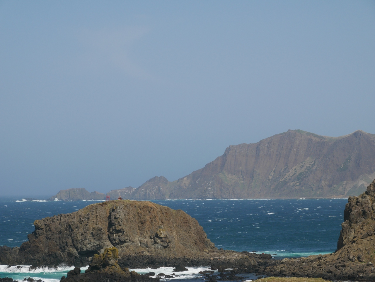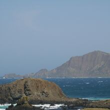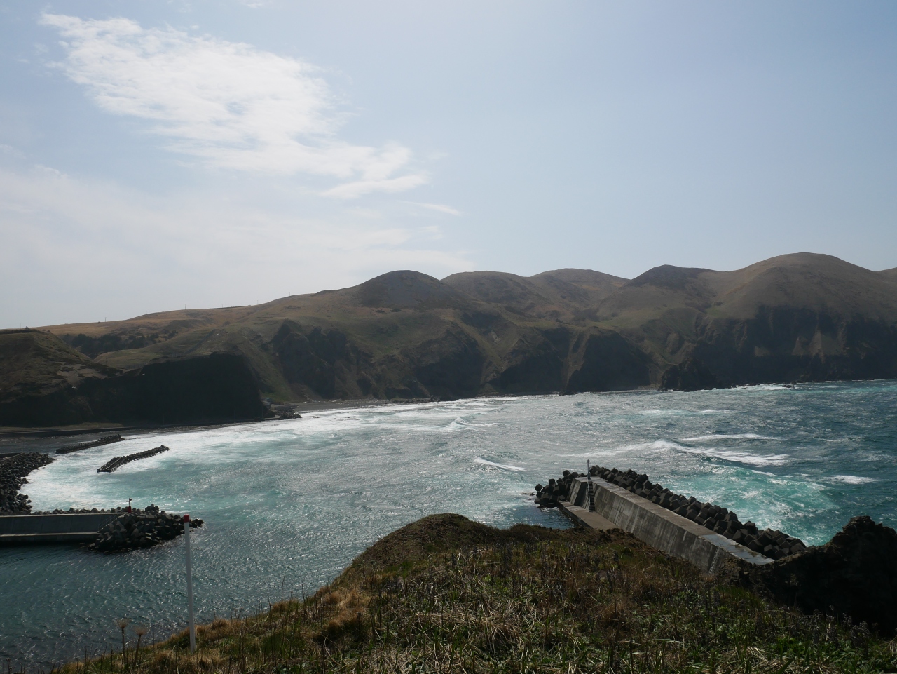 岬の上が、ちょとした展望台のようになっていて、そこから見ると、ちょうど湾のようになっているので、結構な強風だったのにかかわらず波も少なく、海の色が、とってもきれいな青色に見えました。