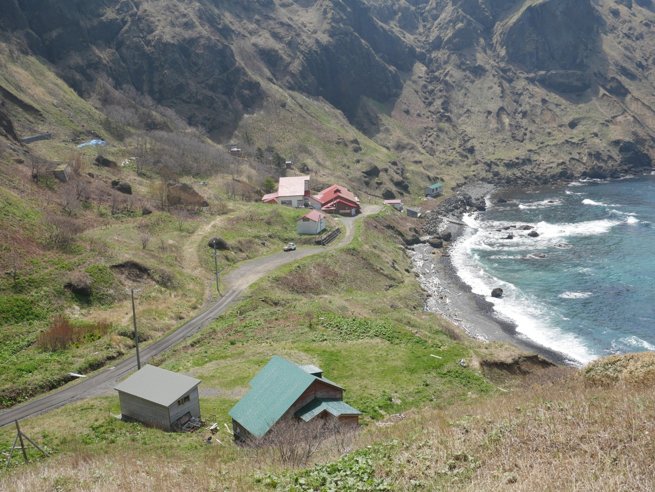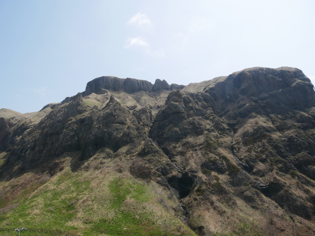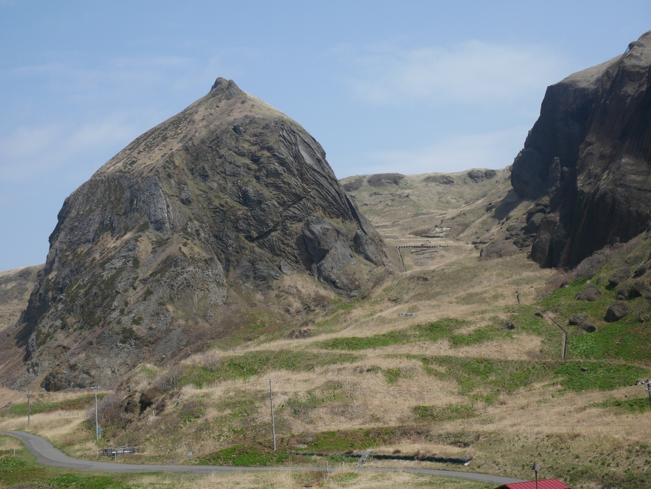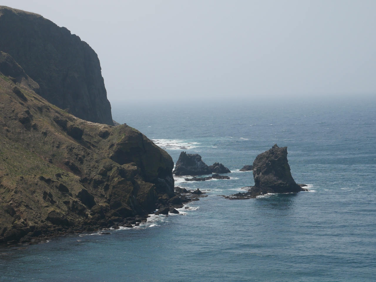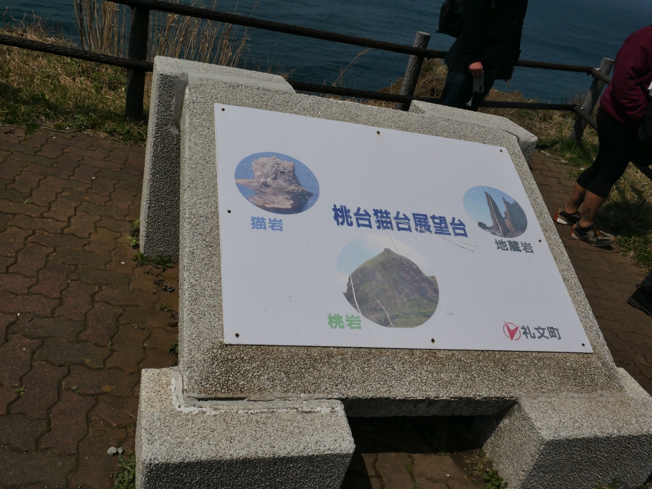 礼文島の南のほうにある展望台で、後ろの山のほうに桃のように見えるという桃岩、海には猫が背中をまるめて座っているようだという猫岩があります。どちらの岩も桃や猫というのには無理があるように感じますが、桃岩は確かに変わった形の岩ですし、猫岩付近の海や岩はきれいなので、何の問題もありません。