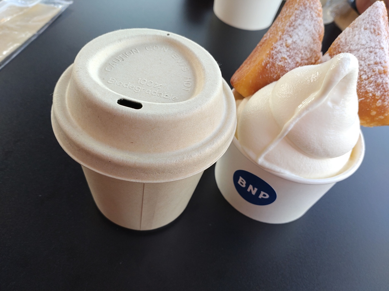 他で食事を済ませた後だったので、今回はテラス席でコーヒーとソフトクリームを頂きました。