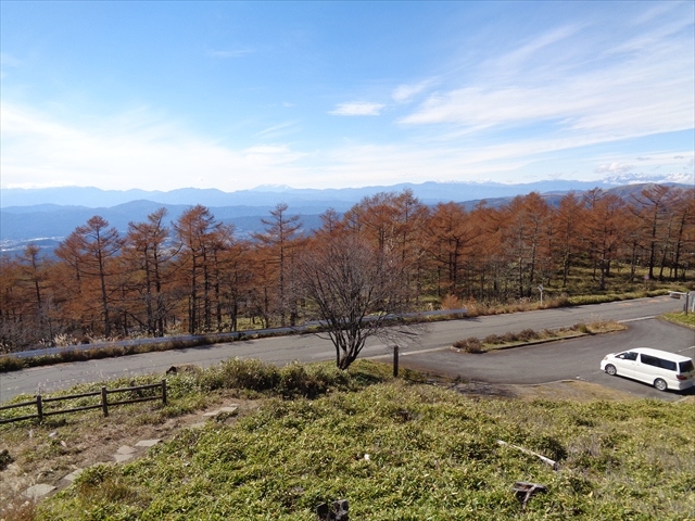 メルヘン街道沿いにある展望台で,標高は1900m以上あるそうです.読み方はひなたこば展望台で,展望台には屋根のあるベンチが作られています.展望台からは南アルプスや北アルプスを一望することができ,とても眺めの良い場所でした.晴れていれば,絶好の撮影スポットです.