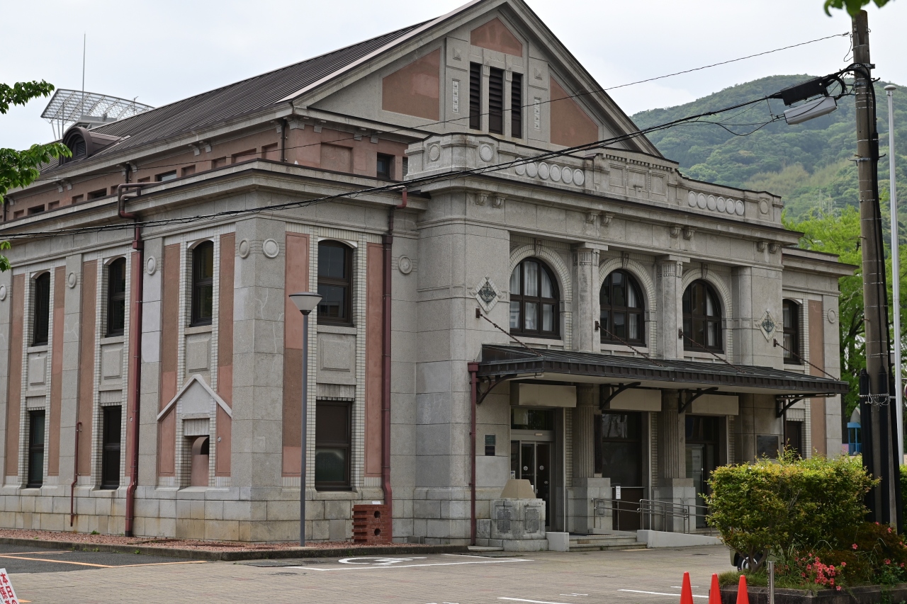 鎮守府は旧日本海軍の地方組織で、佐世保のほか横須賀、呉、舞鶴に置かれた。この記念館は1923(大正13)年5月の竣工で、佐世保鎮守府所属艦隊の地中海などでの活躍を祝し、鎮守府管内の12県(九州・四国・沖縄)の人々の寄付で建設された。その額約8万6000円(現在の価値で約11億円)という。戦後は米軍に接収され、ショーボートの名でダンスホールや映画館に使用。1977(昭和52)年に返還され、現在は佐世保市民文化ホールとして文化活動の練習や発表の場として使われている。国の登録文化財であり、日本遺産の構成要件でもある。外観の意匠がいい。海に向って開かれ、異国の文化を積極的に取り入れてきた港町らしい建物だ。