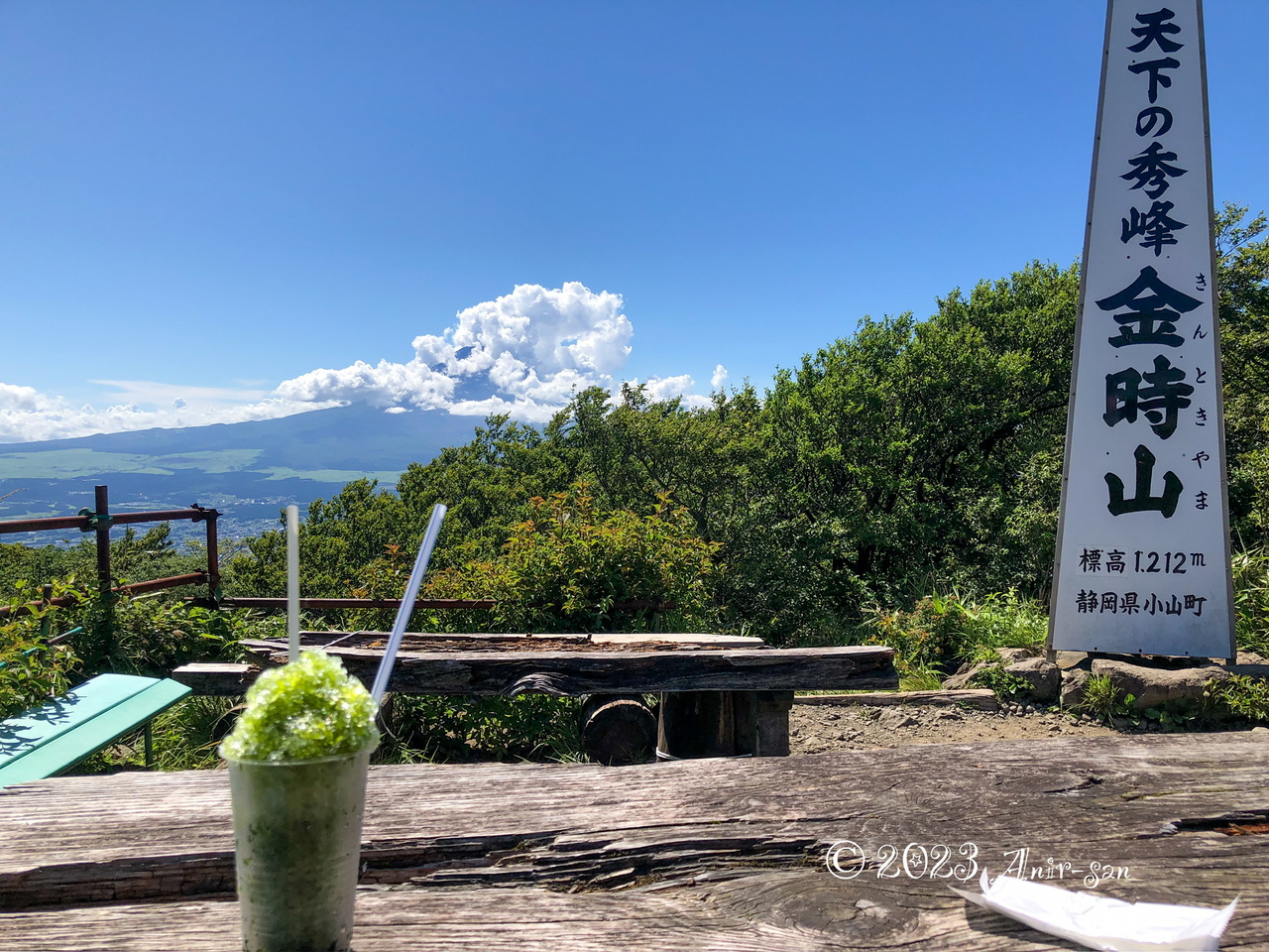 富士山を見るにはちょうどよいとのことですが、晴れてたのにちょうど雲がかかってしまっていたのが唯一残念でした。でも比較的登りやすく山頂自体は眺望がひらけていて気持ちよかったです。茶屋もあって、抹茶かき氷をいただきました。