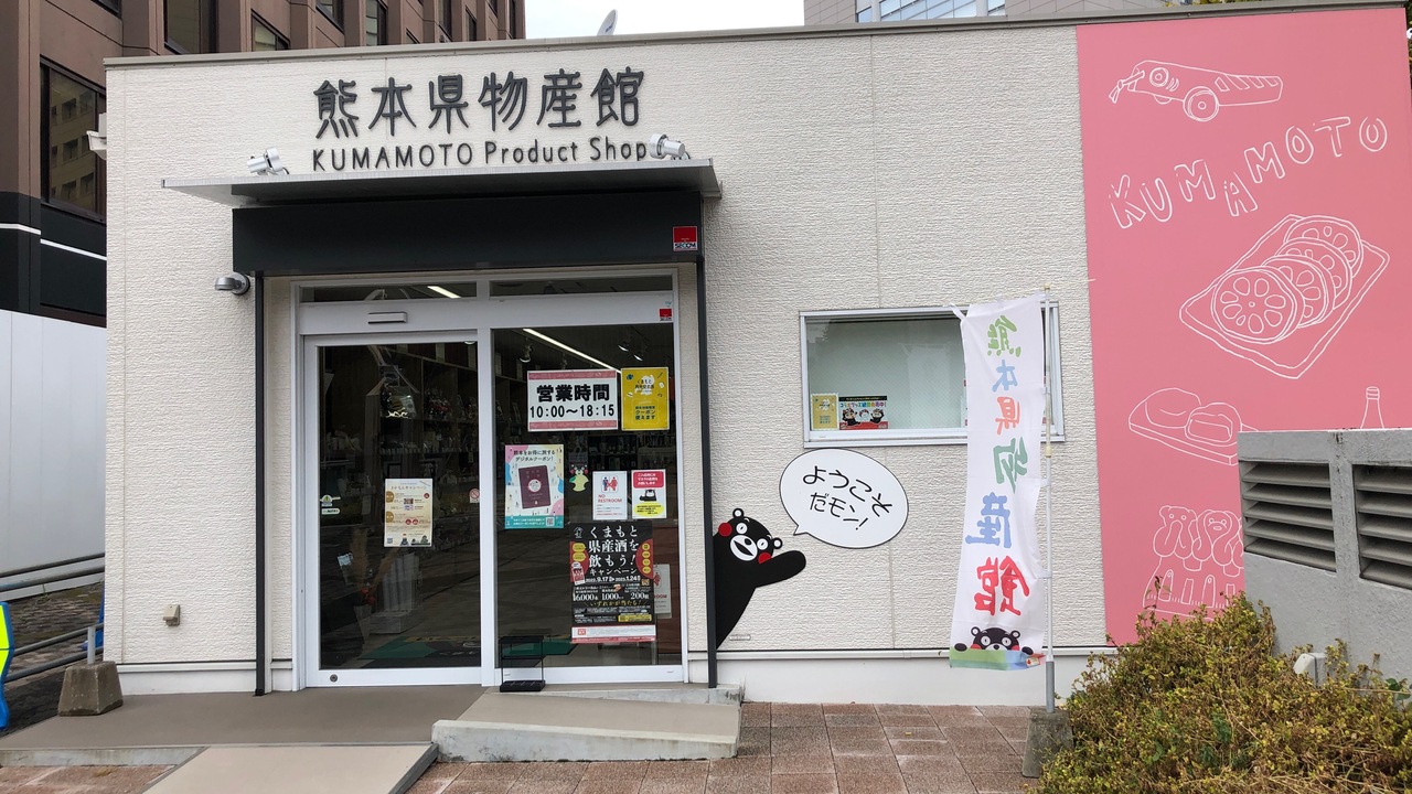 桜町バスターミナルから熊本城へ行く途中で見つけました。もとは、ビルの1階で営業していましたが、工事のため、その隣の仮設店舗で営業中です。店内はそんなに広くはありませんが、熊本県内の物は一通り揃っています。