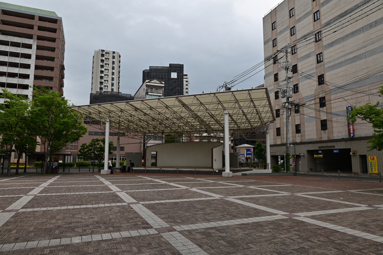 佐世保市中心市街地にある公園だ。中心商店街活性化の好事例でよく紹介される四ケ町アーケード商店街に隣接しており、屋根付きのステージなどが整備されていることからイベントのメイン会場として使用される。YOSAKOIやきらきらフェスティバルなど大規模イベントが繰り広げられる。島瀬美術センターも隣接。日曜日に尋ねたが、アーケード商店街と一体化しており、多くの買い物客が滞留していた。