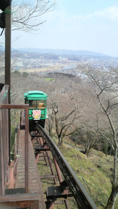 右に左に曲がりながらのんびりと登っていく車内からは眼下に広がる船岡の町並みをゆったりと楽しむことができ、気軽に登山気分を味わえてよかったです。