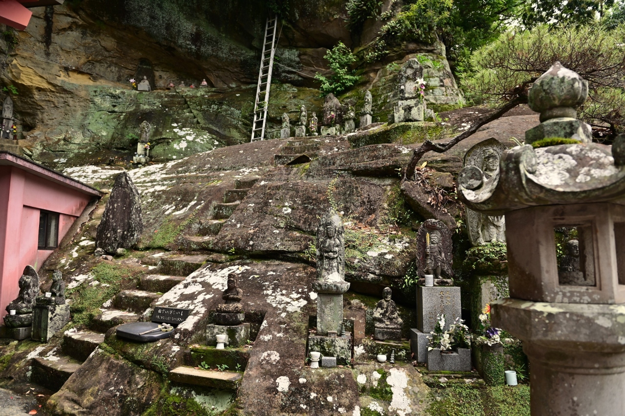 JR佐世保駅に近い国道35号沿いにあるお寺だ。行基が掘った十一面観音像を後年に空海がお堂を建てて祭ったと伝わる。奈良・平安期のスーパースターの二人が建立した寺院となれば引き付けられる。十一面観音は別名「福石観音」と呼ばれ、九州七観音の一つに数えられるように。空海が建立したお寺が清岩寺だ。お堂の周辺は岩窟が多い。佐世保市は洞窟遺跡が日本一多いことで知られるが、やはり掘りやすい岩なのだろう。