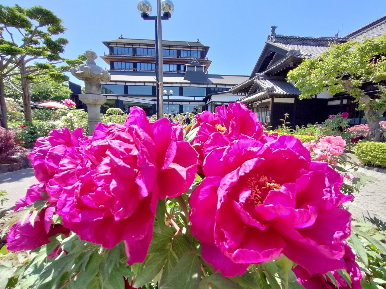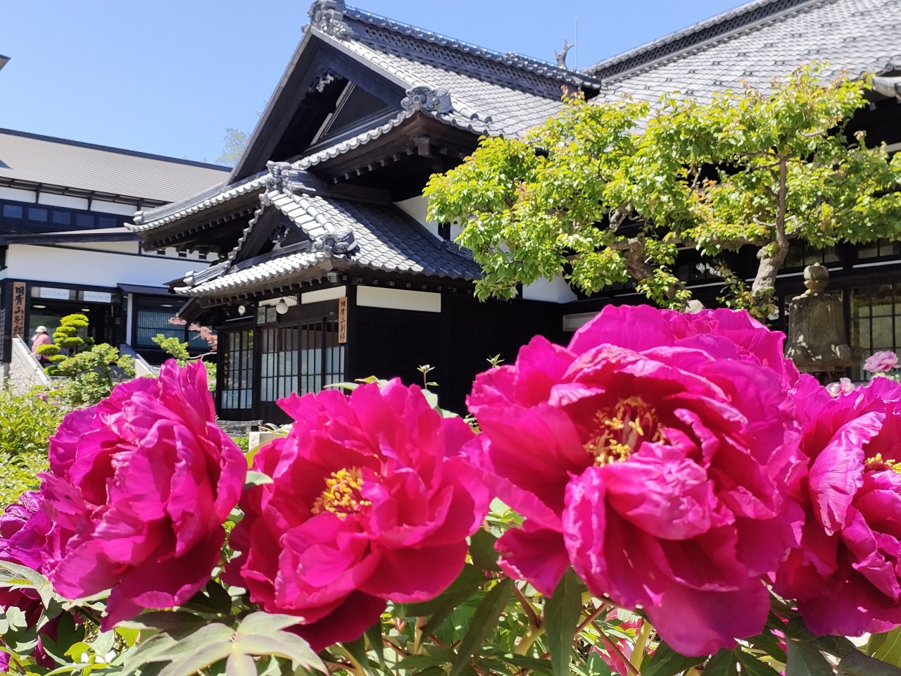 おおよそ毎年5月末、あるいは6月初日あたりに行けば、牡丹が見ごろになっていて、まず間違いないです。赤、紫、白、桃、黄など、さまざまな品種が植えられ、花期に多少ズレがありますが、5月末が、一番多くの花が咲きそろっているという感覚をもっています。