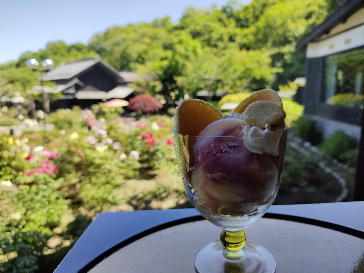 レストランは、牡丹庭園を望む広い窓に面していて、建物内で落ち着いてゆっくり座って、食事やデザートを楽しみながら、ゆっくり牡丹を眺めることができます。