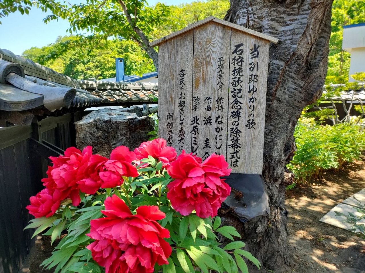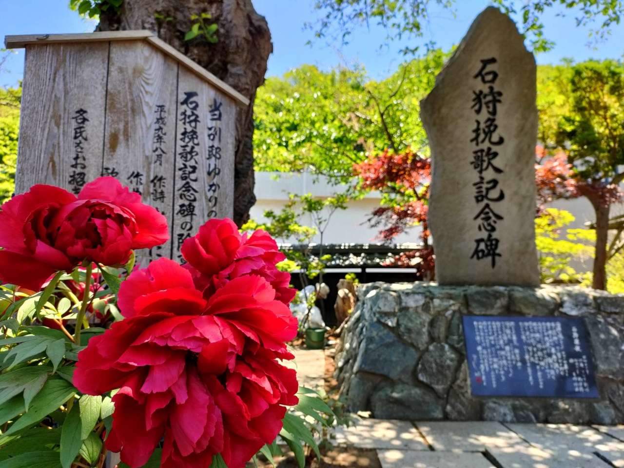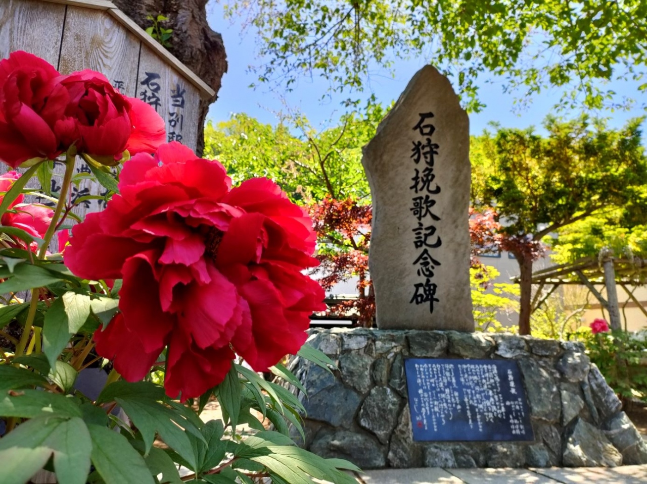 ただ、記念碑の近くにも牡丹ほか、ツツジなどの花が植わっていて、開花すると記念碑も映える感じになり、牡丹・芍薬の見学を併せて訪れる方がよいと思います。