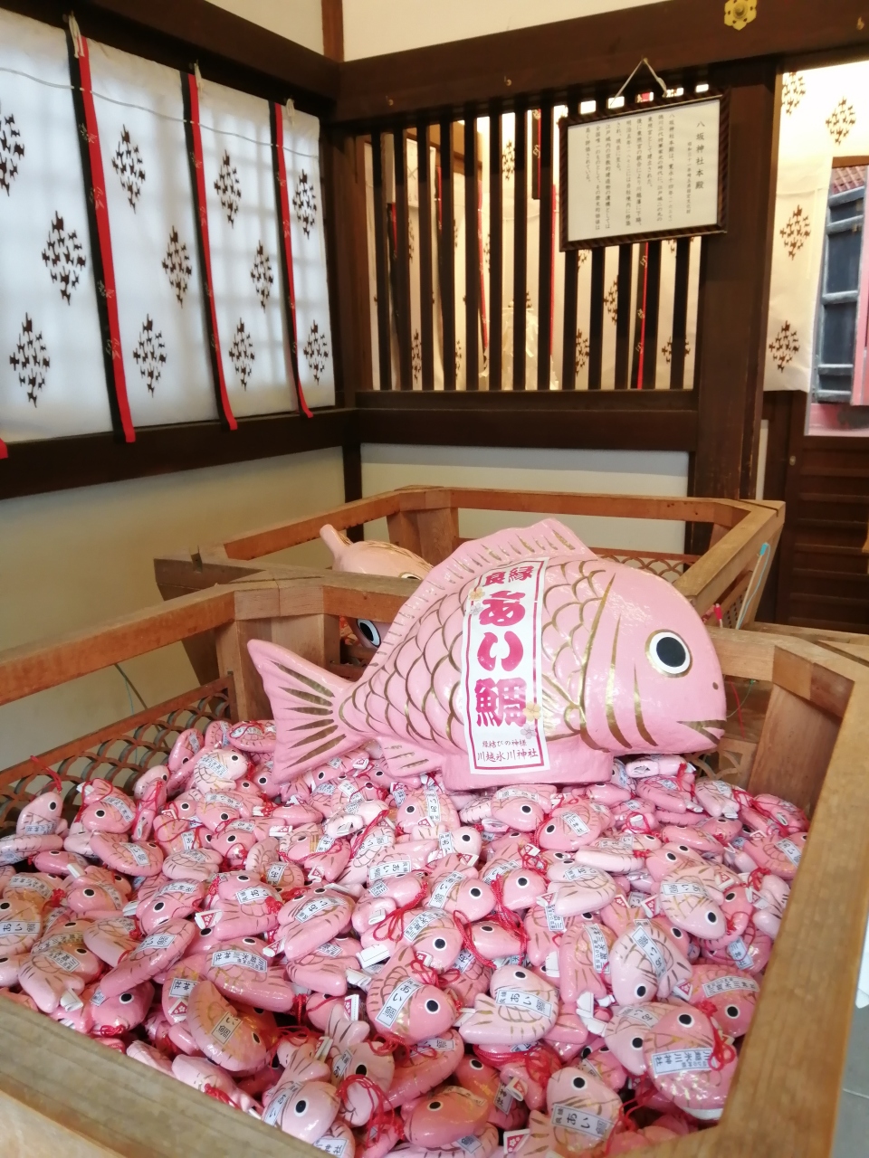 他の神社では見たことがなかったのが鯛みくじで、釣竿を使って「良縁あい鯛」と書かれた小さな鯛を釣り上げました。