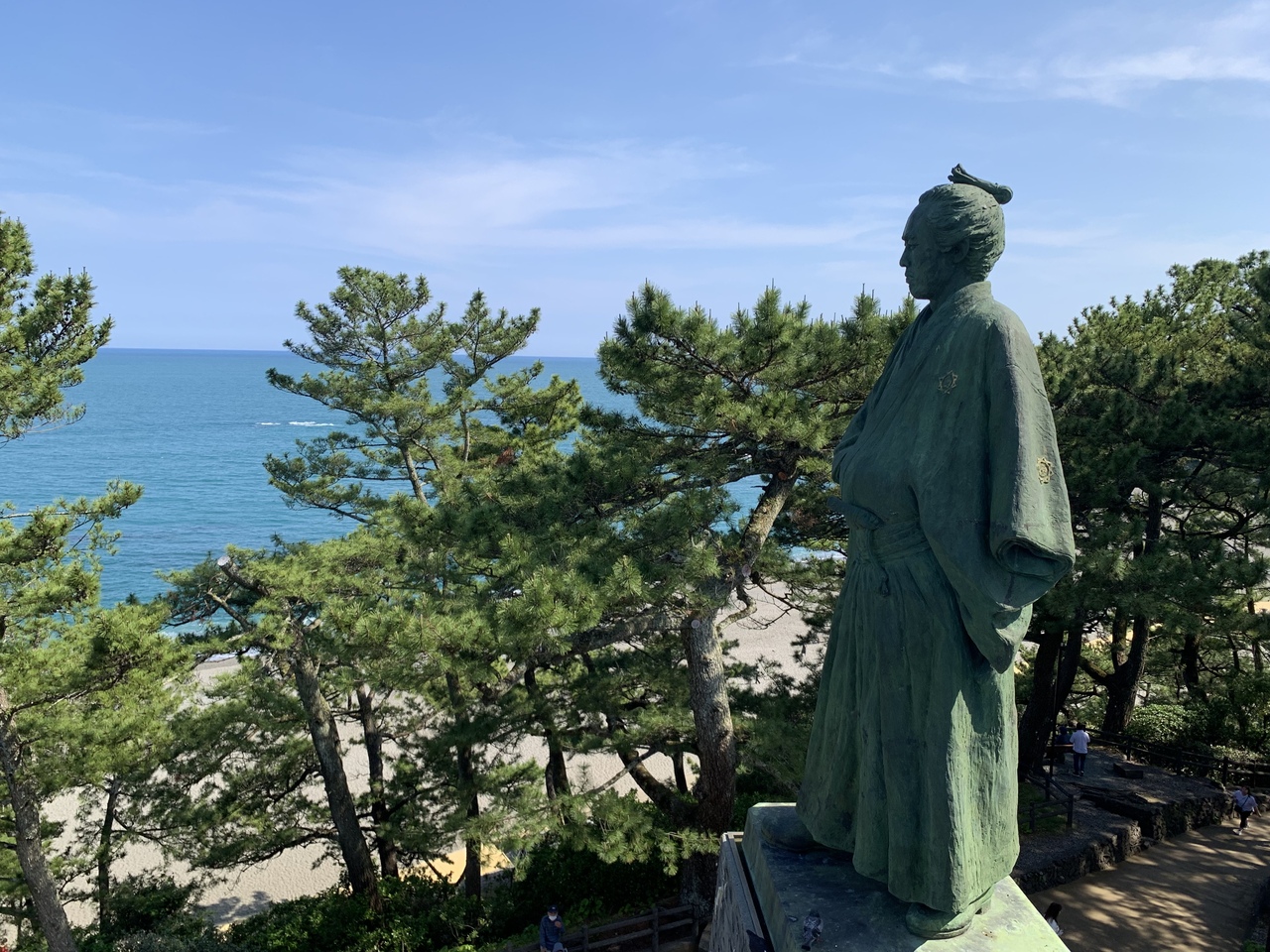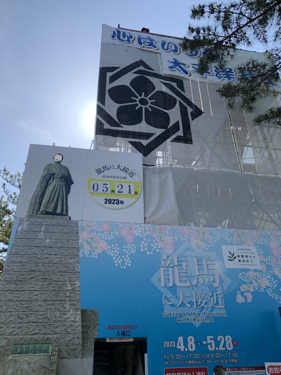 坂本龍馬像は思っていたよりも大きく、隣には足場が組まれていて100円ですぐ近くで見ることが出来ました。