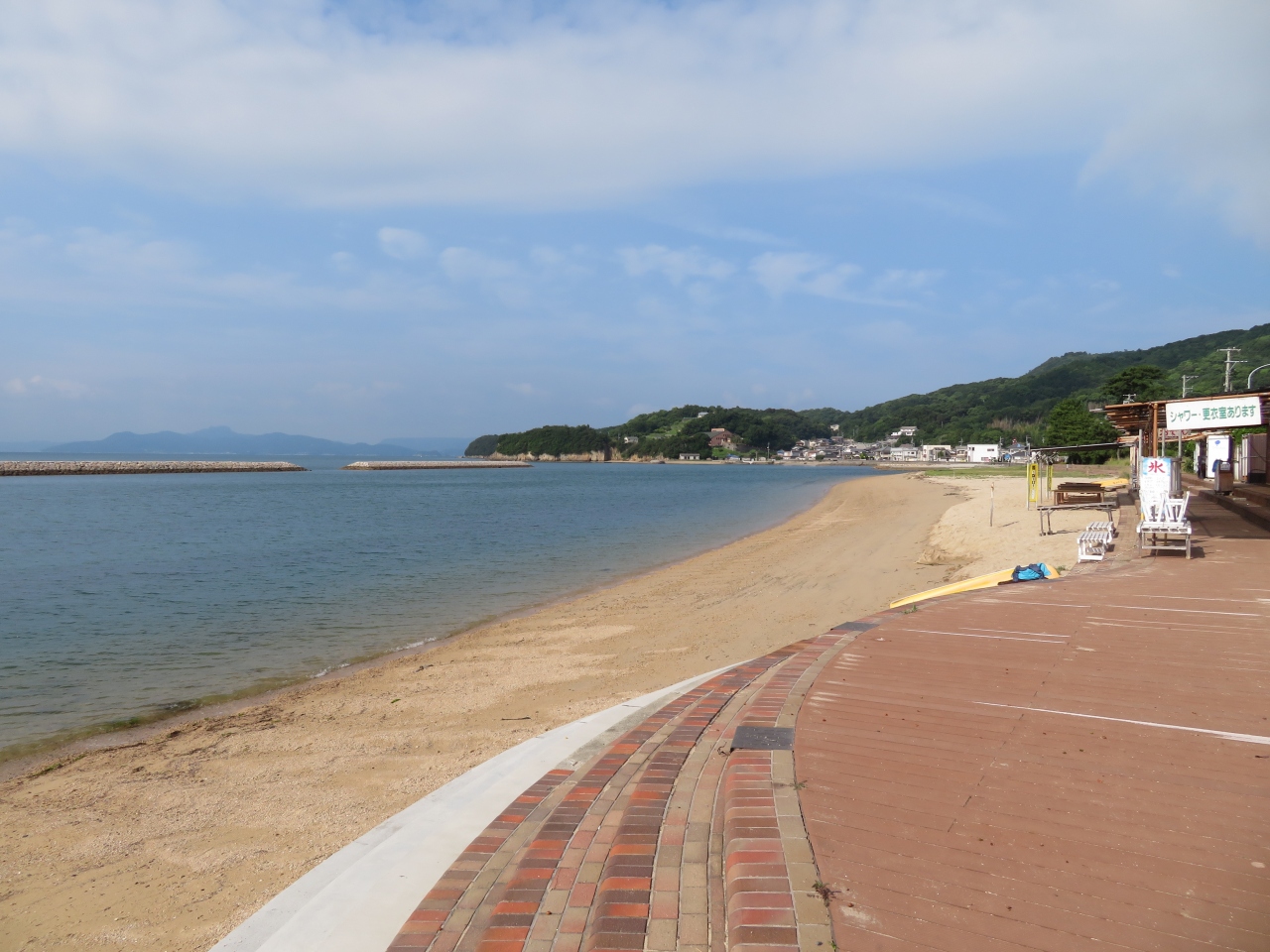 朝に通りかかった時はのどかな海で瀬戸内海だなと感じましたが、午後に通ると土庄の街から近いので地元の人が海水浴でたくさん利用している感じでした。ウッドデッキも整備してありましたし、海の家も小さなものですが営業していました。地元では気軽に来れる海水浴場なんですね。