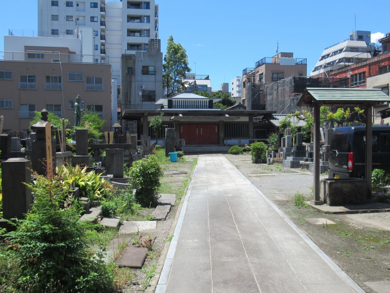 日比谷線・三ノ輪駅1b出口から10分ほど、浅草国際通り沿いに建つ西徳寺を訪れた際に立ち寄った浄土宗の寺です。西徳寺のすぐ近くに建つ寺で、山門は開いていて車が一台停まっていたものの、本堂の扉は閉まり人がいる様子は見られませんでした。墓地の草も自然のままの状態で、手入れされている様子が見られませんでした。多くの人が働いている活気が感じられる西徳寺に比べ、静かな寺という印象でした。
