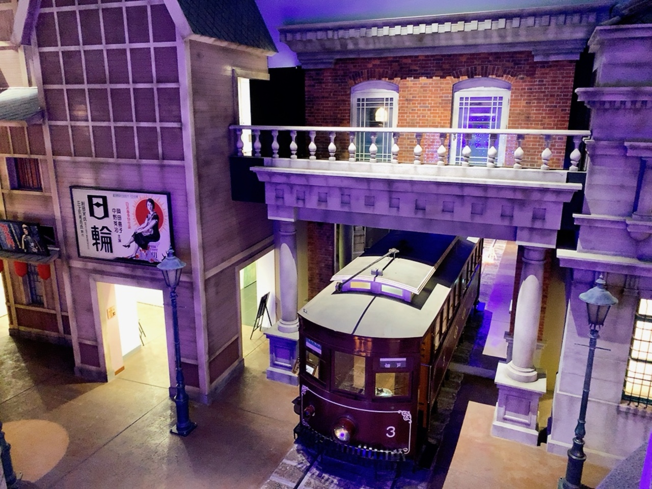 路面電車も再現されていて、なかなかリアリティあります。 時間ごとに天井の色が変わり、青空→夕闇→夜空と、1日を通しで表現していたので、門司港の1日を見ることが出来る感じでした。