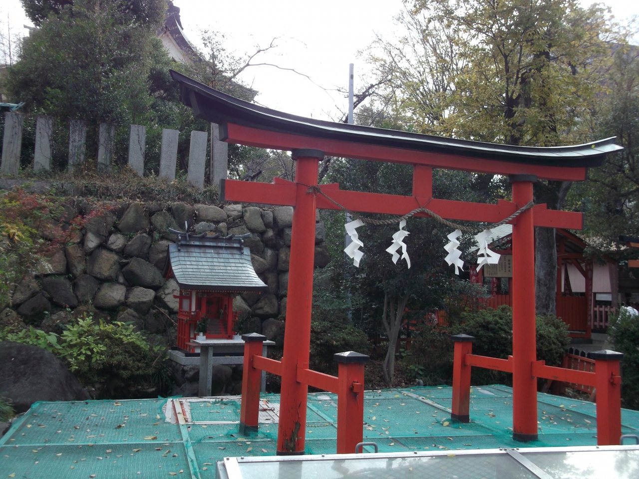 広い生國魂神社の境内社の一つで、商売繁昌、豊漁祈願、海上安全の御利益があるそうです。朱塗りのあざやかな鳥居の前は池になっていて、鳥居の先には小さな祠があるのが見えました。池があるのは珍しく、鮮魚を扱う商人、漁師、釣り人からの信仰が厚いことが納得できました。