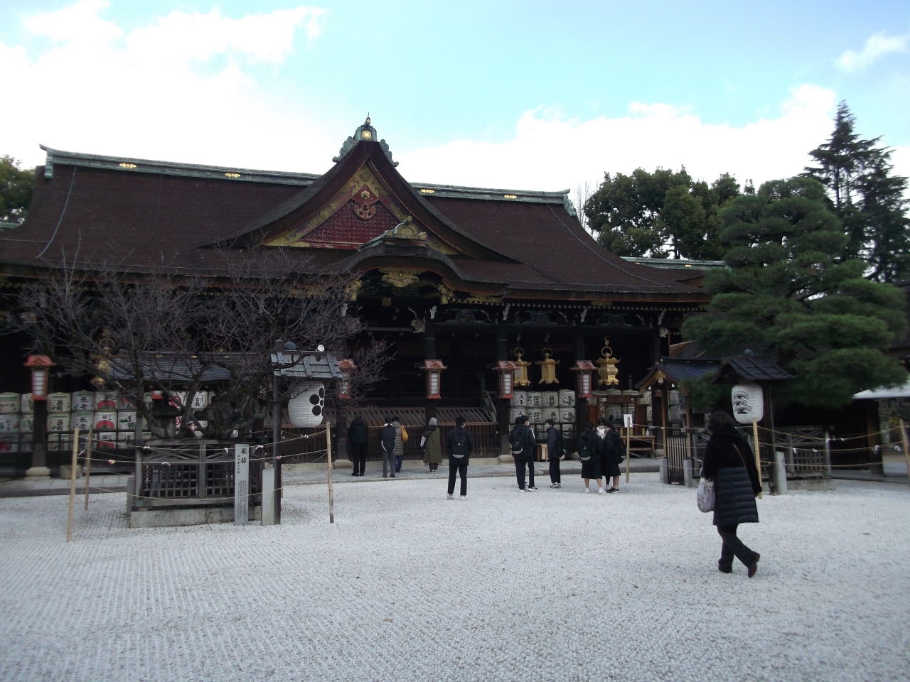 嵐電の北野白梅町駅から歩いて5分ほど、学問の神様菅原道真を祀る天満宮の総本社です。境内はかなり広く、拝殿へ向かう参道の途中には撫でると御利益のあるいくつもの牛の像が立っています。学問の神様を祀る神社だけあって、早朝にもかかわらず多くの学生の団体で混雑していました。親戚の受験生のために合格祈願のお札とお守りを購入し、静かに参拝を済ませました。