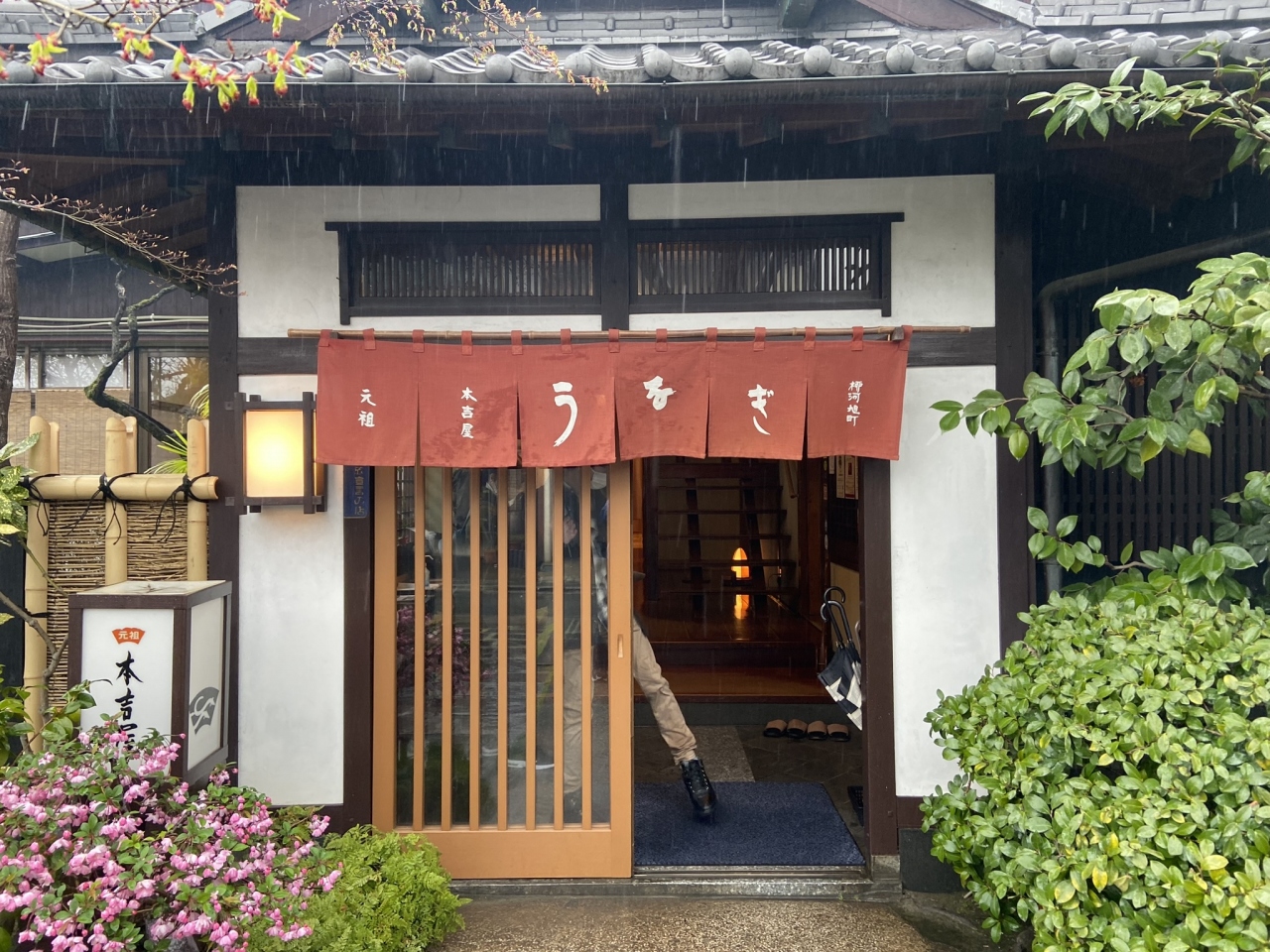 家族で福岡に出かけ、柳川を訪れることにした。強い雨が降っており川下りに乗船することは断念し、昼食にウナギせいろ蒸しで名高い元祖本吉屋本店を選んだ。