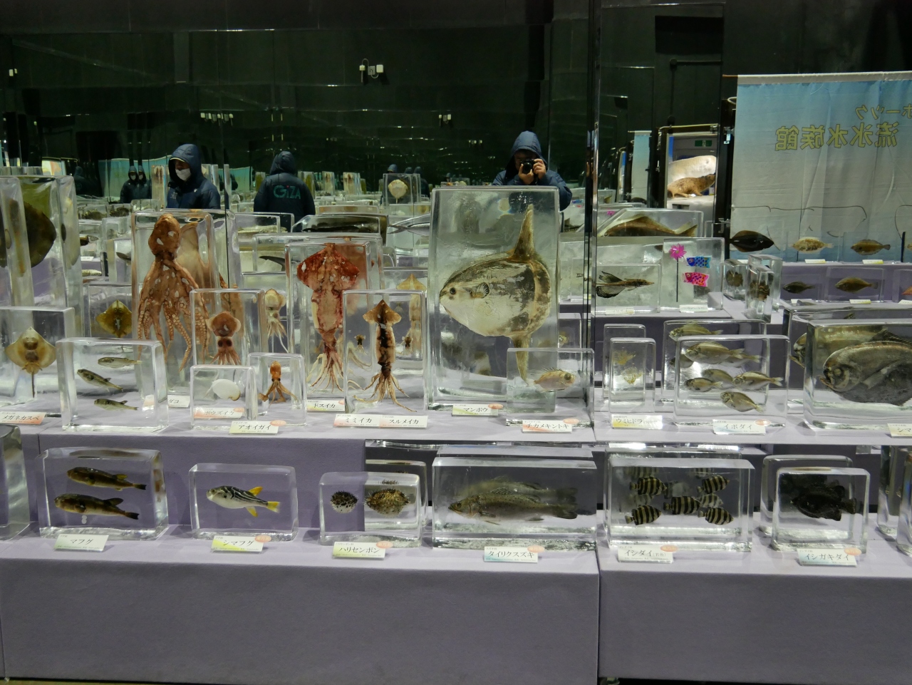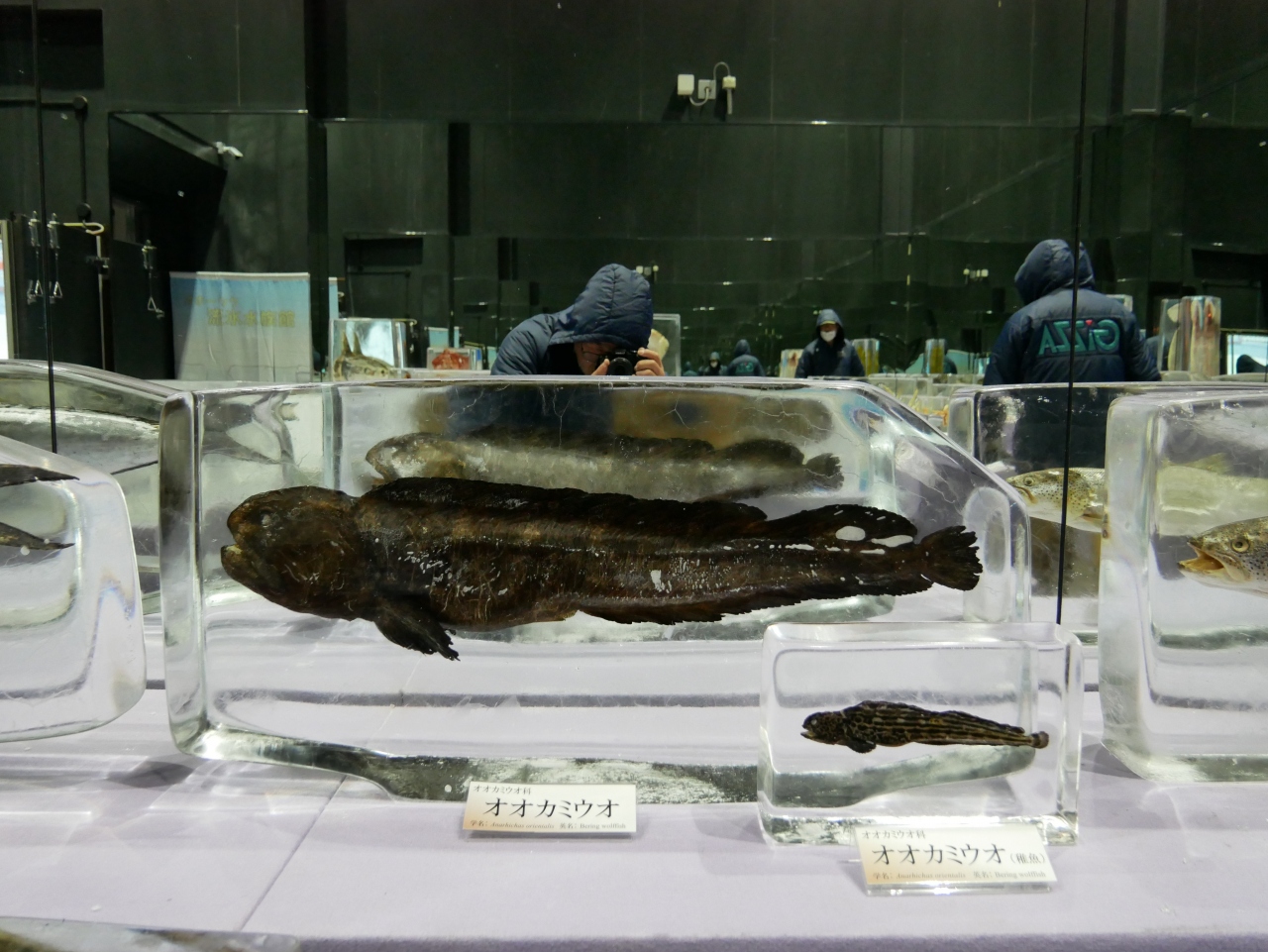氷の中に魚を閉じ込めて展示しているんですが、これがきれい。