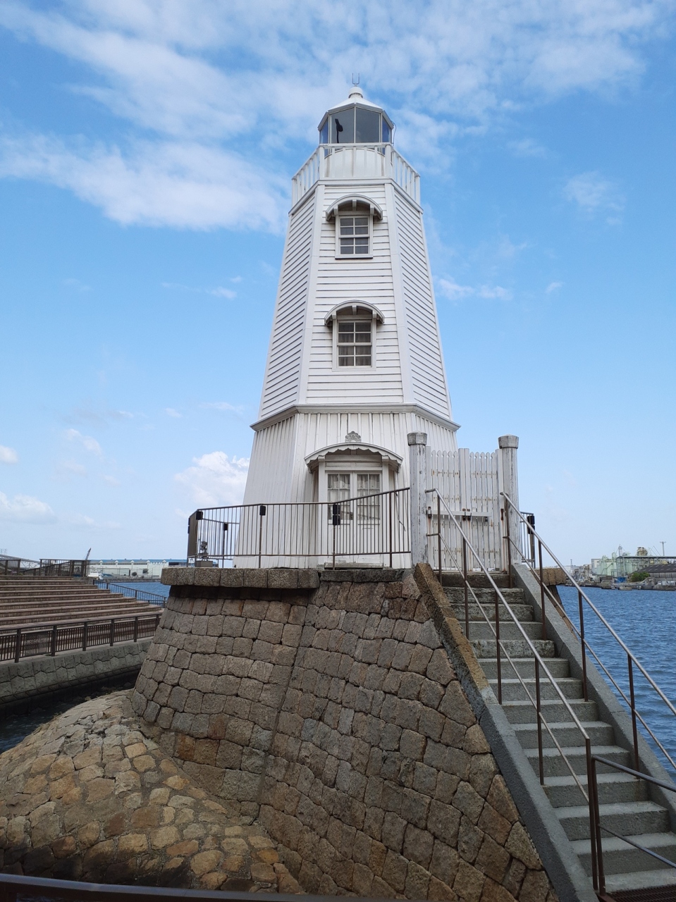堺駅から徒歩で訪問。堺東や阪堺電気軌道からは少し離れています。高架下をくぐって海沿いに出た先にあります。おしゃれで存在感のある灯台です。神戸にあっても違和感ないデザイン。現役の灯台とはまた違った魅力があります。