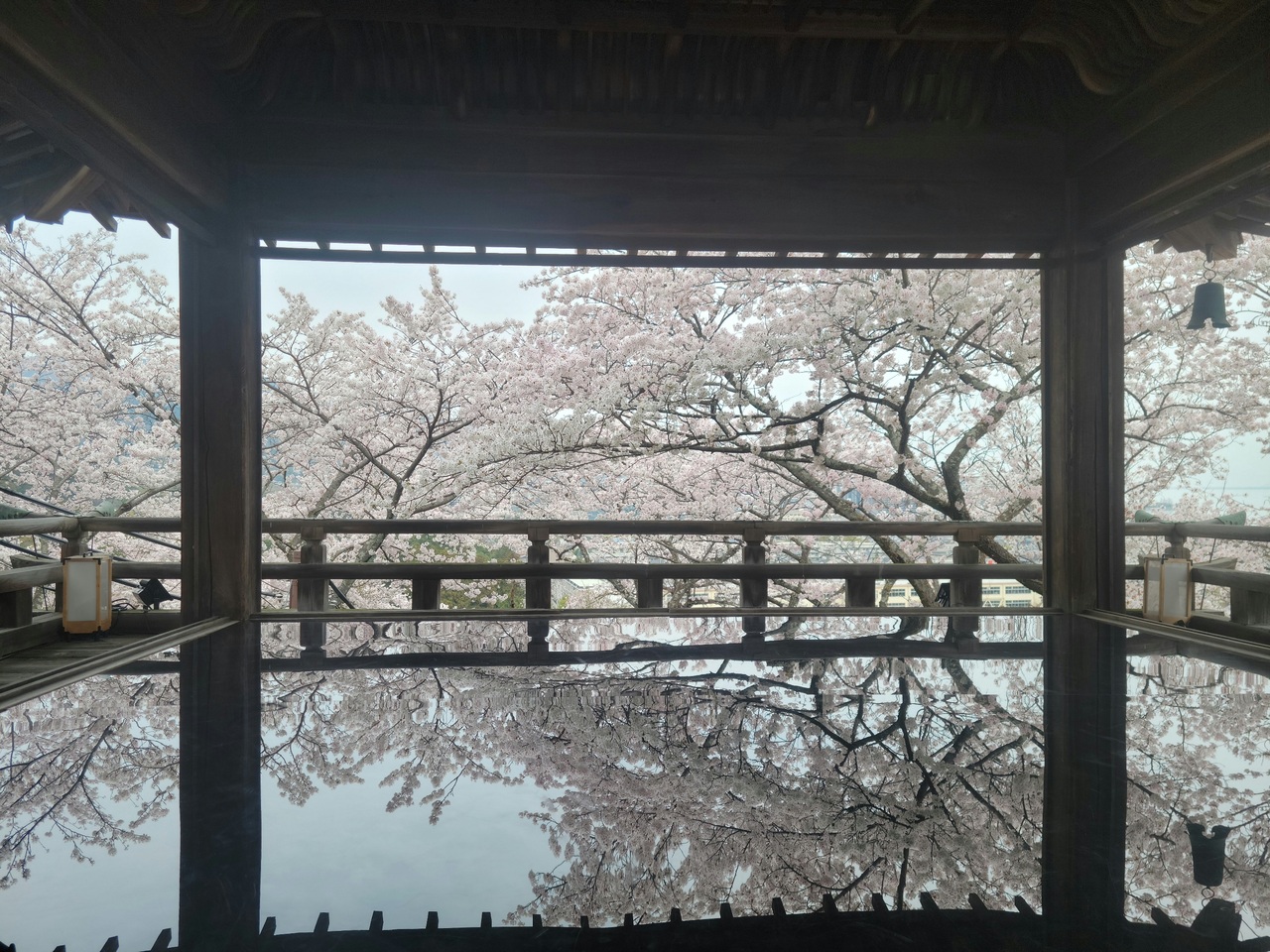 桜の時期に友人が予約してくれて三井寺の観月舞台に入ることができました。