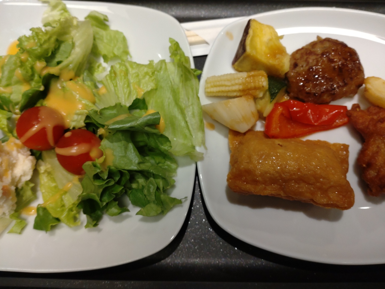 114番ゲート付近のANAラウンジは午前中しか営業しておらず、大混雑の110番ゲート付近を利用しました。まず空席が見つからないし、料理をとるのも順番待ちでした。キャパシティオーバーなのは人手不足の影響かもしれません。