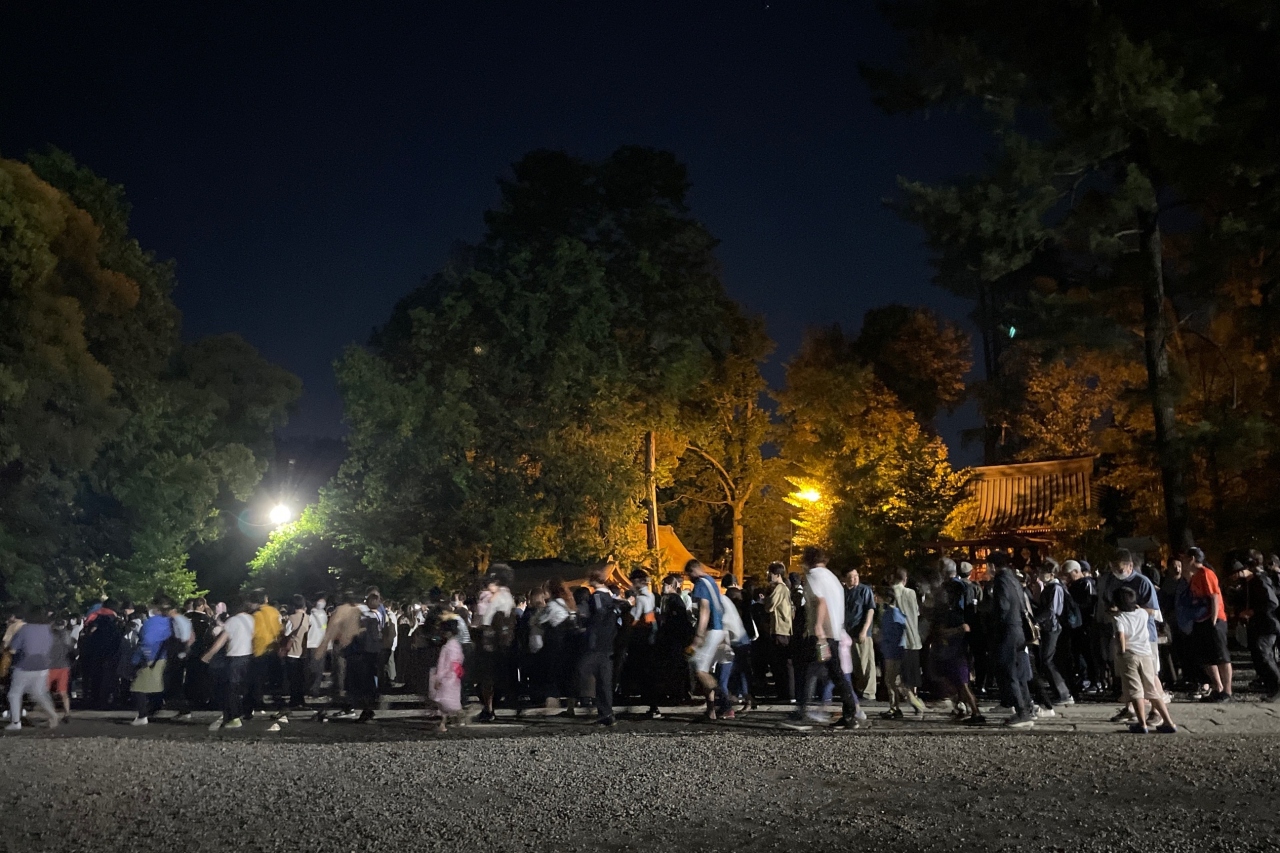 氷川参道に氷川マルシェの露店が出ていますので飲食物を買って並んで待つのが良いと思います。