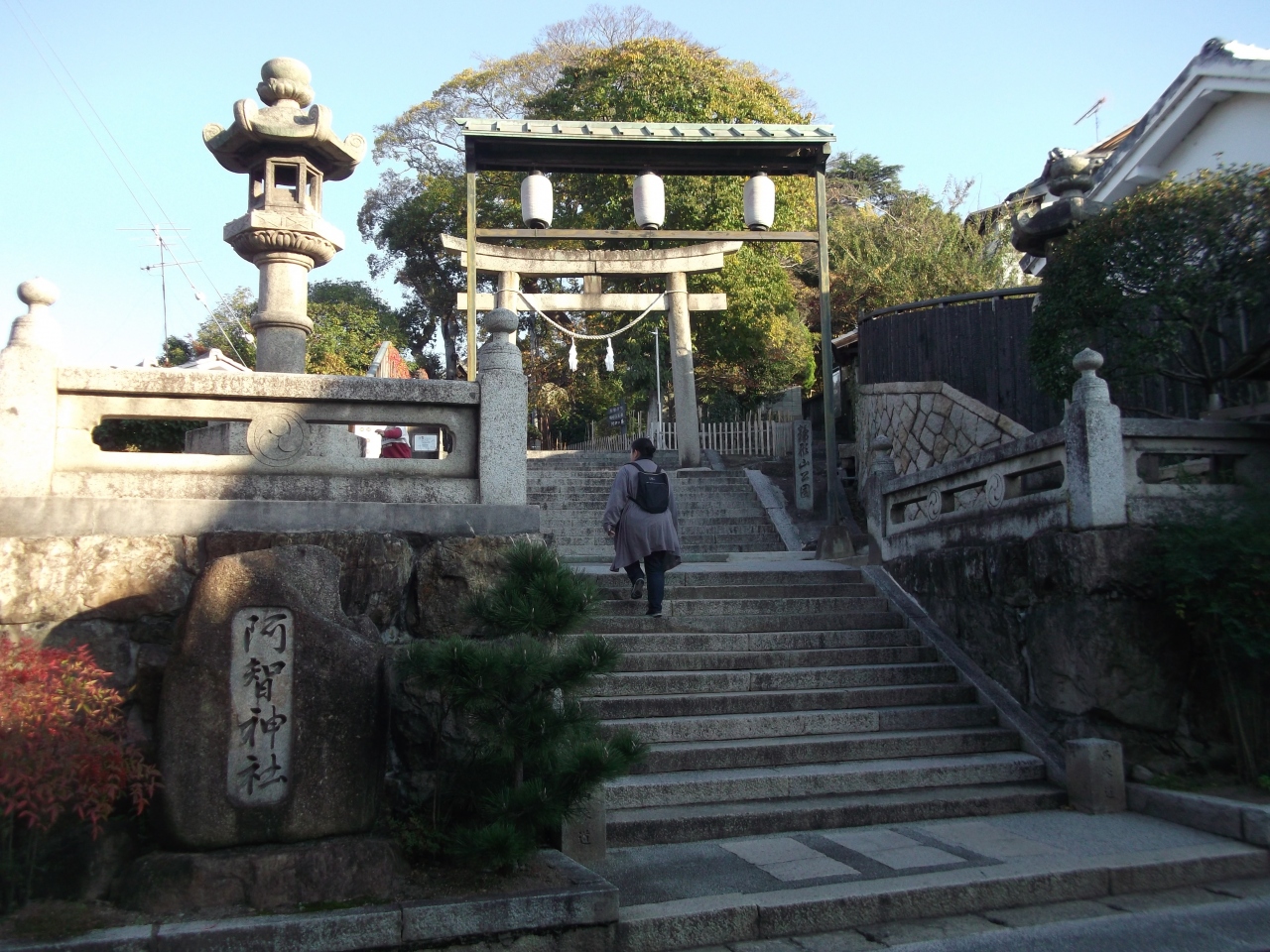 倉敷本通り商店街から、石段をかなり上っていった高台にこの神社がありました。倉敷の総鎮守と言われているだけに、頂上にある社殿は太いしめ縄がとても目立つかなり立派なものでした。高台にあるので、眼下に広がる倉敷の街が眺められました。