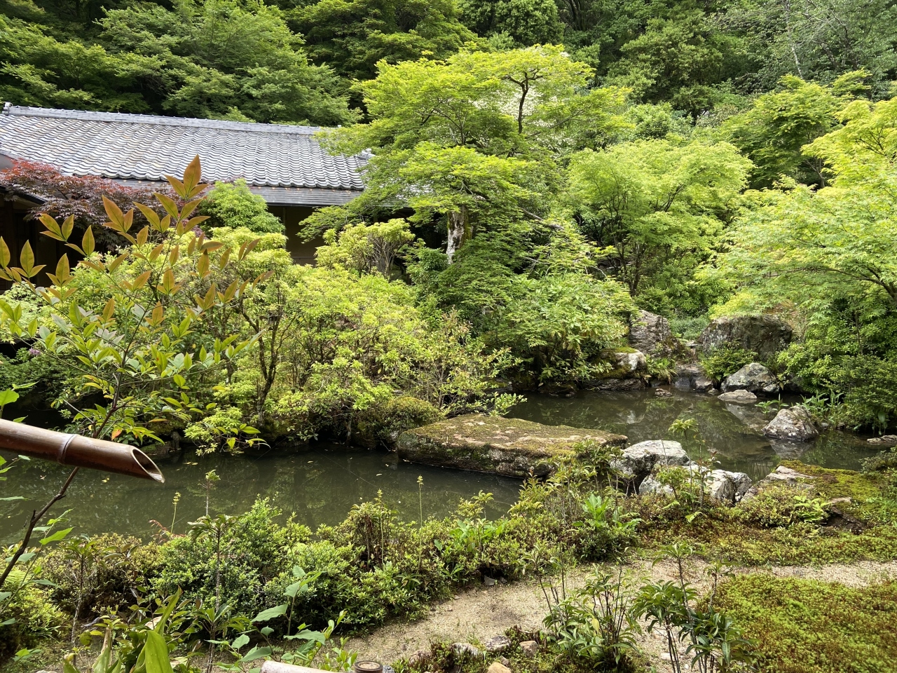 葵祭を見るため久しぶりに京都を訪れた。その前日、雨の中実相院を参拝した。床もみじが名高いが、もちろん5月は新緑の季節、床みどりを鑑賞することにした。最寄り駅は叡山電鉄の岩倉駅で徒歩15分ほど。