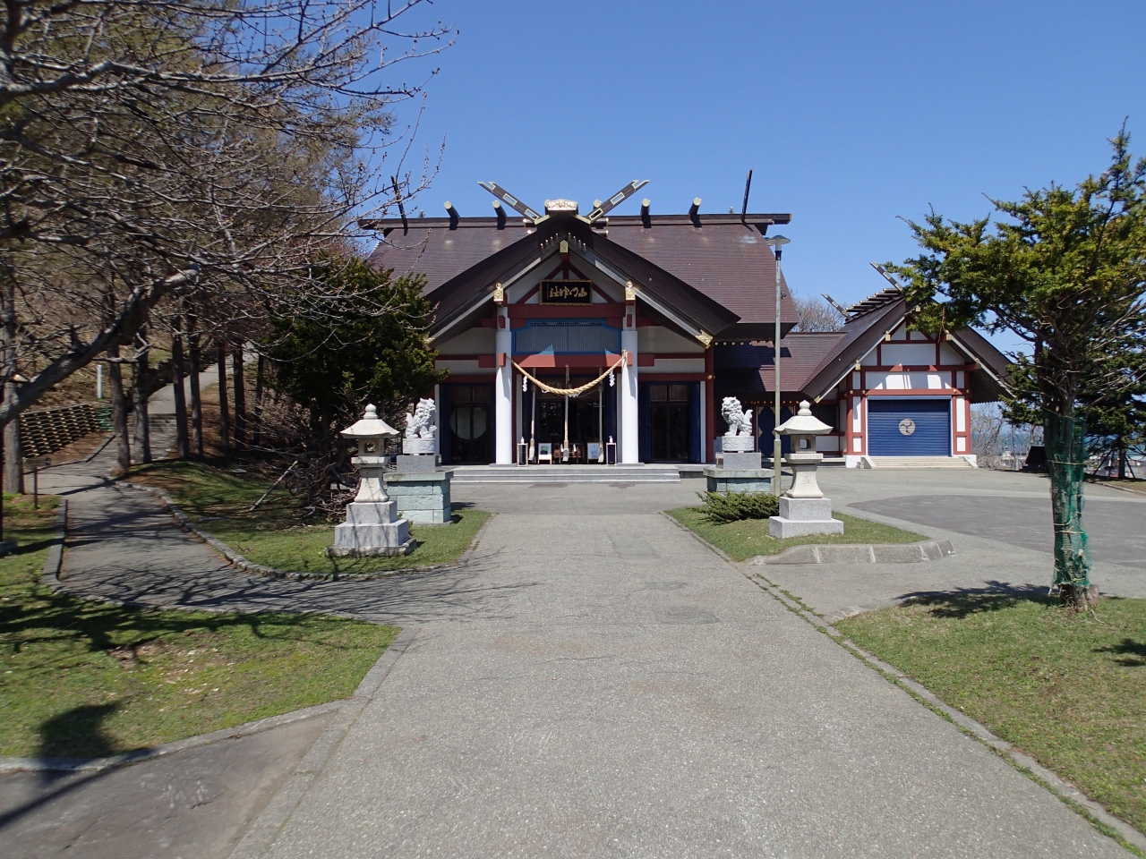 稚内駅からは歩いて10分程度で行くことが出来ます。ノシャップ岬方面行の路線バスでも行くことが出来ます。高台に位置しているので、眺めもいいです。高台から降りてきた参道からは、北防波堤ドームを見ることが出来ます。