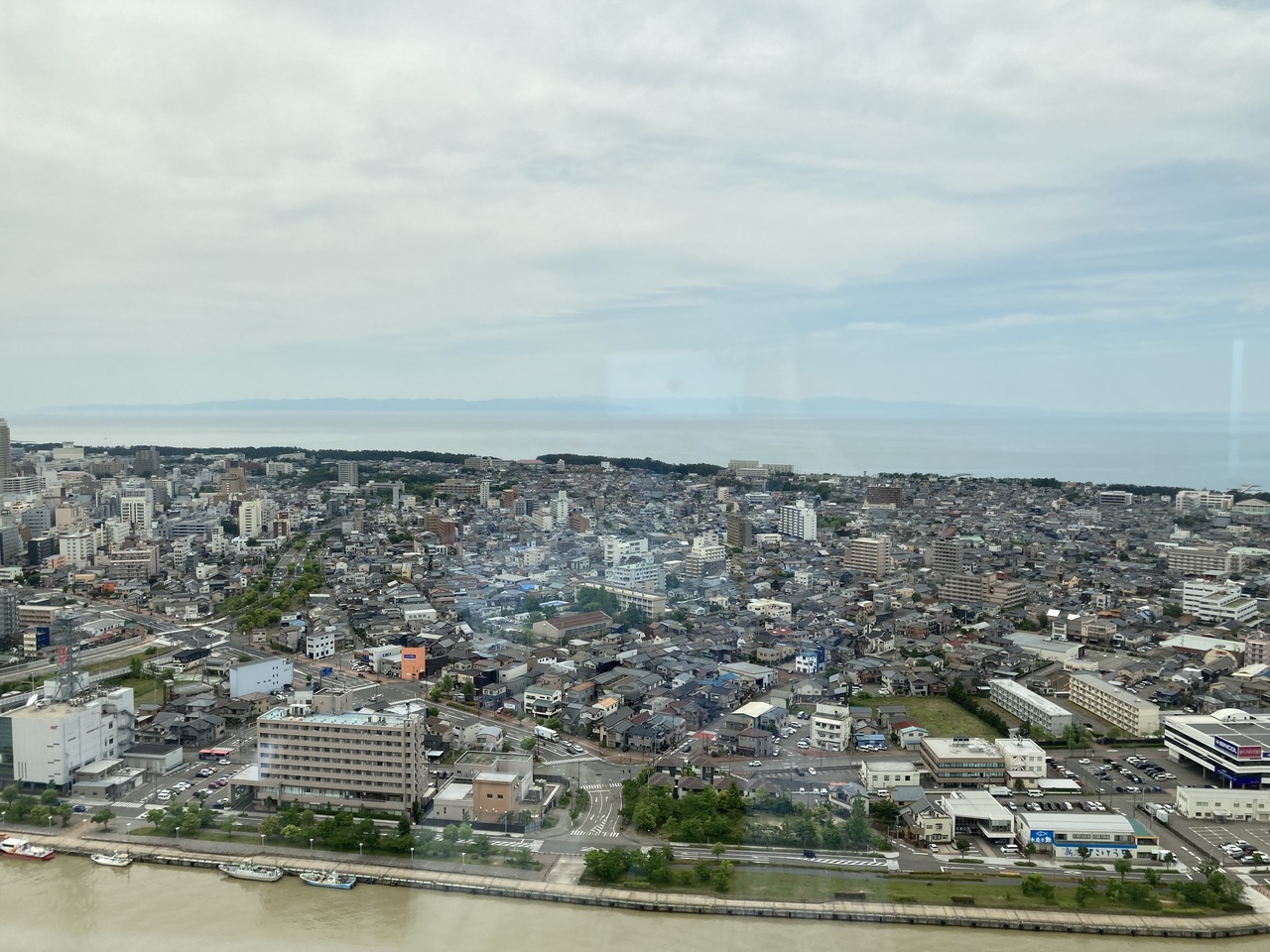 ガイドブックには必ず載っている場所です。無料で地上125メートルからの眺望が楽しめる、とのこと。それなのに、ほとんどお客さんが居なくてびっくりしました。新潟市街、佐渡島、日本海、信濃川。四方の眺めを存分に楽しみました。