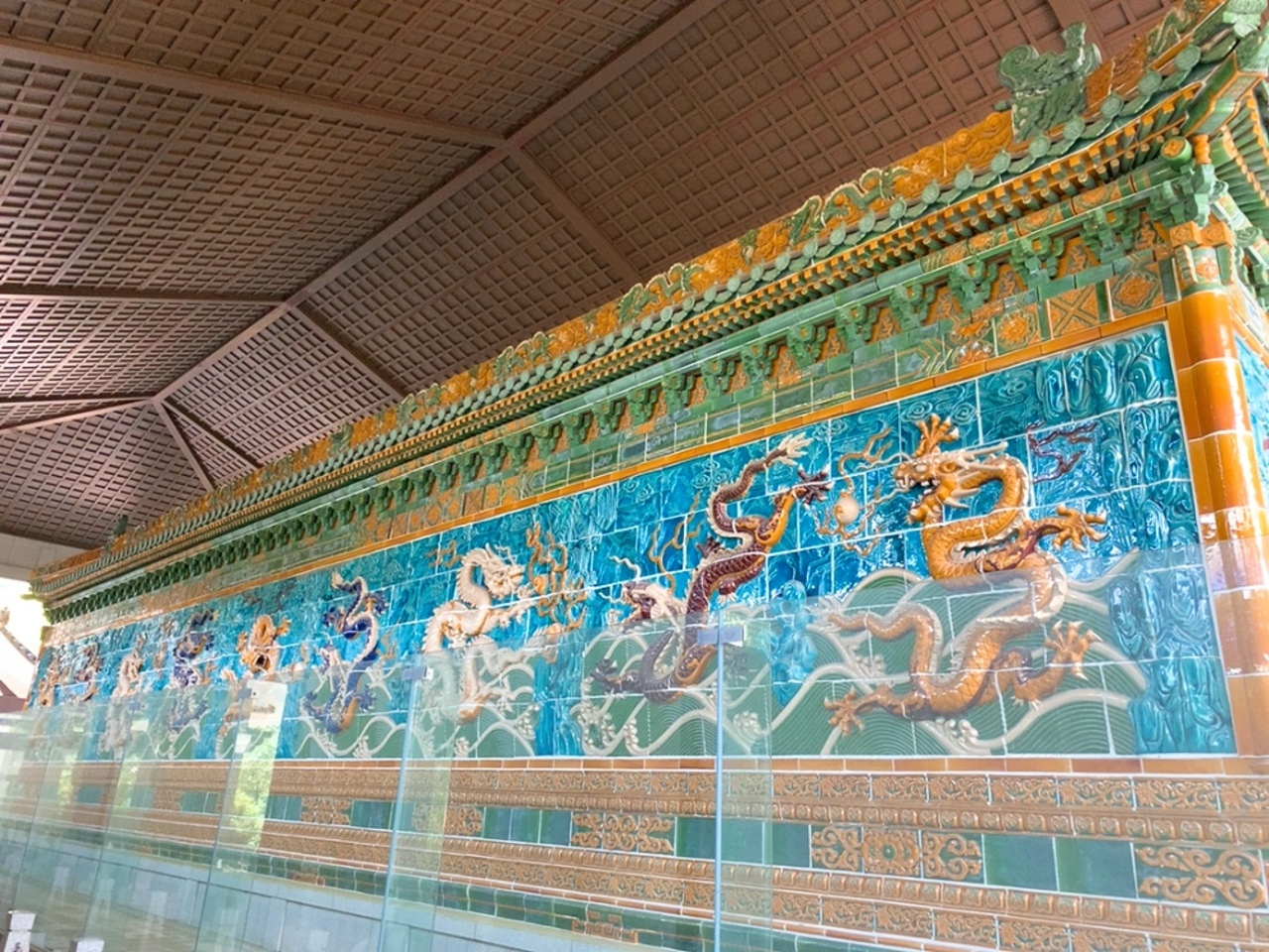 ちなみに、五重塔に行く途中の、屋根でガードされた小屋みたいなスペースに、九龍壁(九龍殿)と呼ばれる中国の装飾壁を中国政府の許可のもとに再現した作品が展示されていましたが、何かよくわからんかったです…。 とりあえず、かなりお金をかけて作ってることは分かりました。