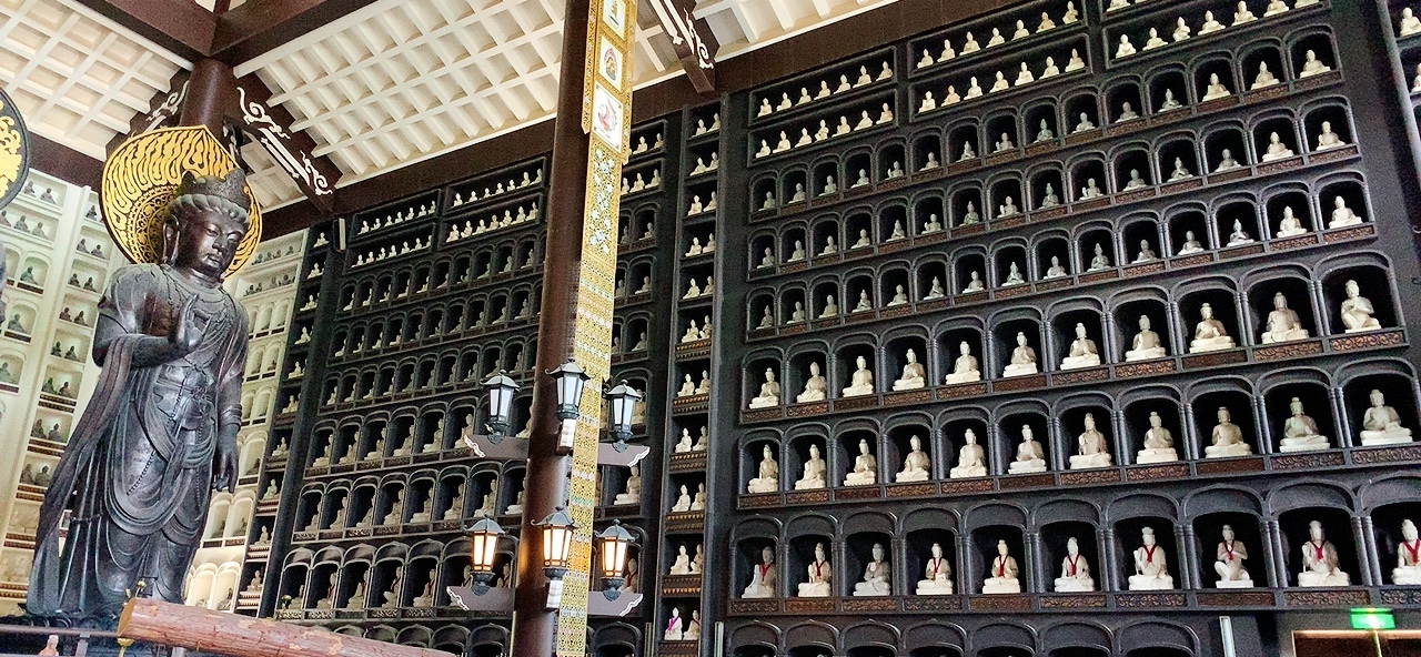 大仏殿の中に安置されている大仏や、大仏殿三方の壁には、11段の龕と呼ばれる棚が作られていて、それぞれが高さ1mほどの小仏群が1281体安置されており、何気にコレが1番の越前大仏での見どころかな?と思います。