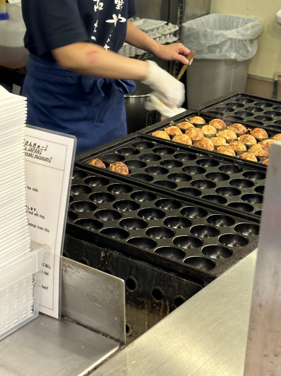 たこ焼きなのに緩い。そして焼いているのを見たら大小様々!若いバイトが適当に焼いて、ソースとかかけるからどうでもいい感じでした。そして中もスカスカ。良い所なし。こんなお店がたこ焼きミュージアムにあるのが残念。週一で来ていて、初めてのお店で期待しましたがもう来ません。