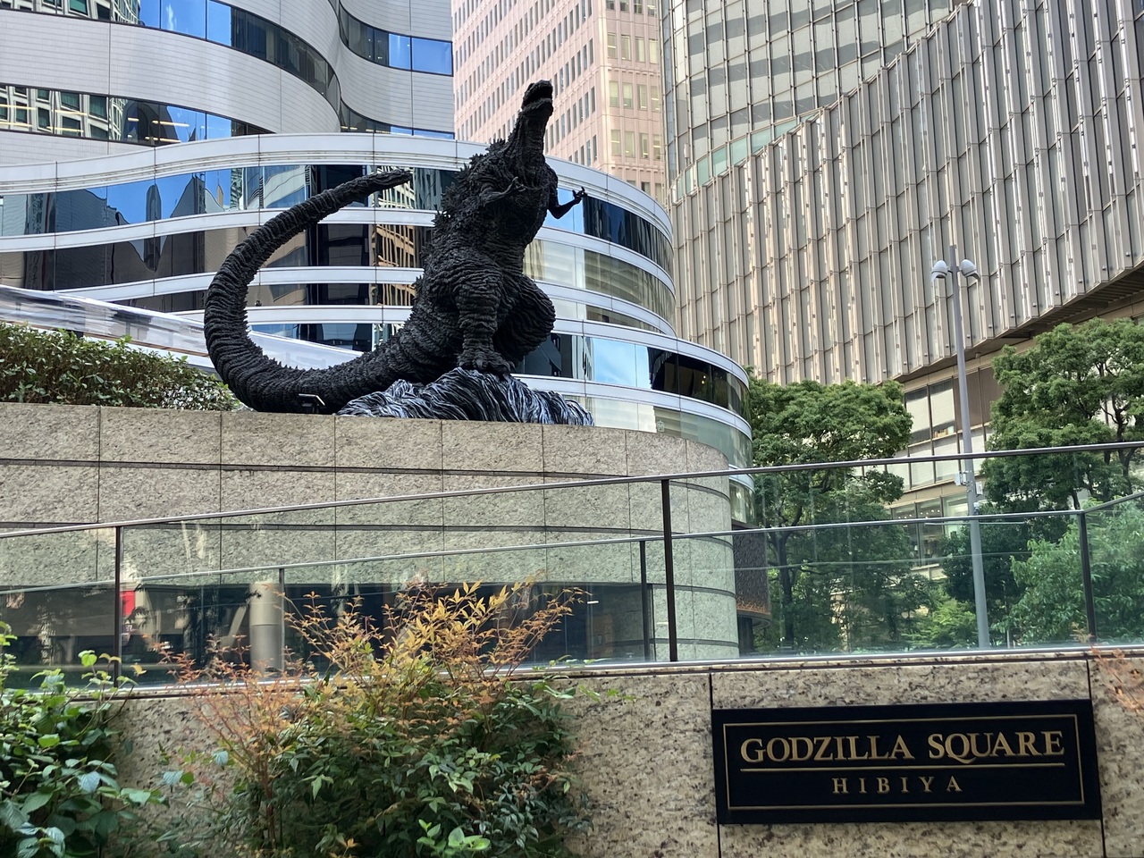 JR「有楽町駅」日比谷口から徒歩で3分ほどです。「東京ミッドタウン日比谷」の前にあります。「日比谷シャンテ」開業30周年を記念してリニューアルオープンしました。「旧合歓の広場」が「日比谷ゴジラスクエア」と改名されたところです。ゴジラ像も「シン・ゴジラ」をベースとした一回り大きな像となりました。