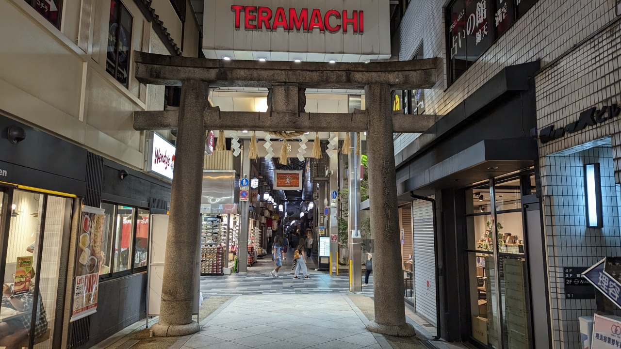 寺町専門店会をずっと南に歩いていると、突然賑やかな商店街にぶつかると錦市場です。四条通りのちょっと手前です。