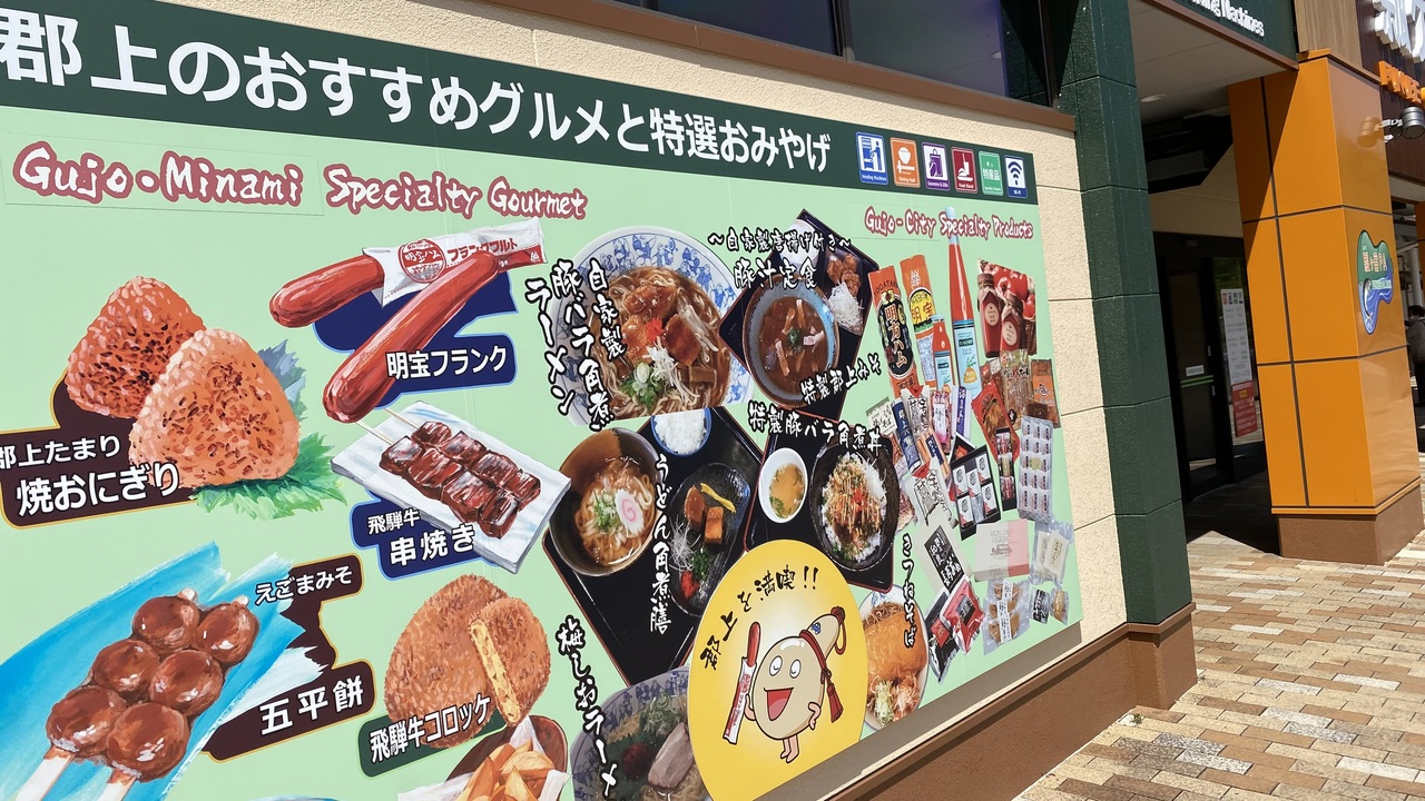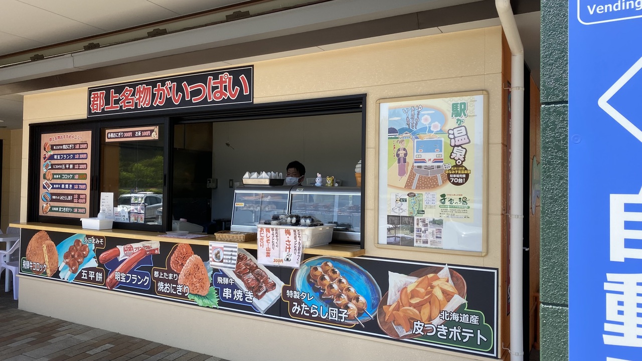 東海北陸自動車道の富山方面に向かう途中美並インターにあります。規模はそんなに大きくないですが、お土産とレストランもあります。外にはテイクアウトのお店もあり、岐阜グルメの五平餅、明方ハムなど食べることができます。