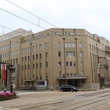 富山駅の南口から南東に300m程行った電気ビル前交差点の角に富山電気ビルデイングがあります。本館と新館があり、それぞれ昭和11年、31年に建てられた鉄筋コンクリート造のオフィスビルです。登録有形文化財に指定されるビルは非常に重厚感のある外観で、威厳のある姿がとても印象的です。戦災をくぐり抜けた富山の歴史的建造物として貴重です。