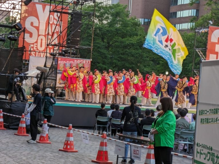 30年近く前に小規模なイベントからスタートしましたがいまや夏の大イベントで本家の高知とは違う形でヨサコイが進化しました。最大の特徴は踊りのダイナミックな動きでチームで競います。正面の席は有料ですが公園の脇からは無料で見れます。最終の土日はパレードもあります