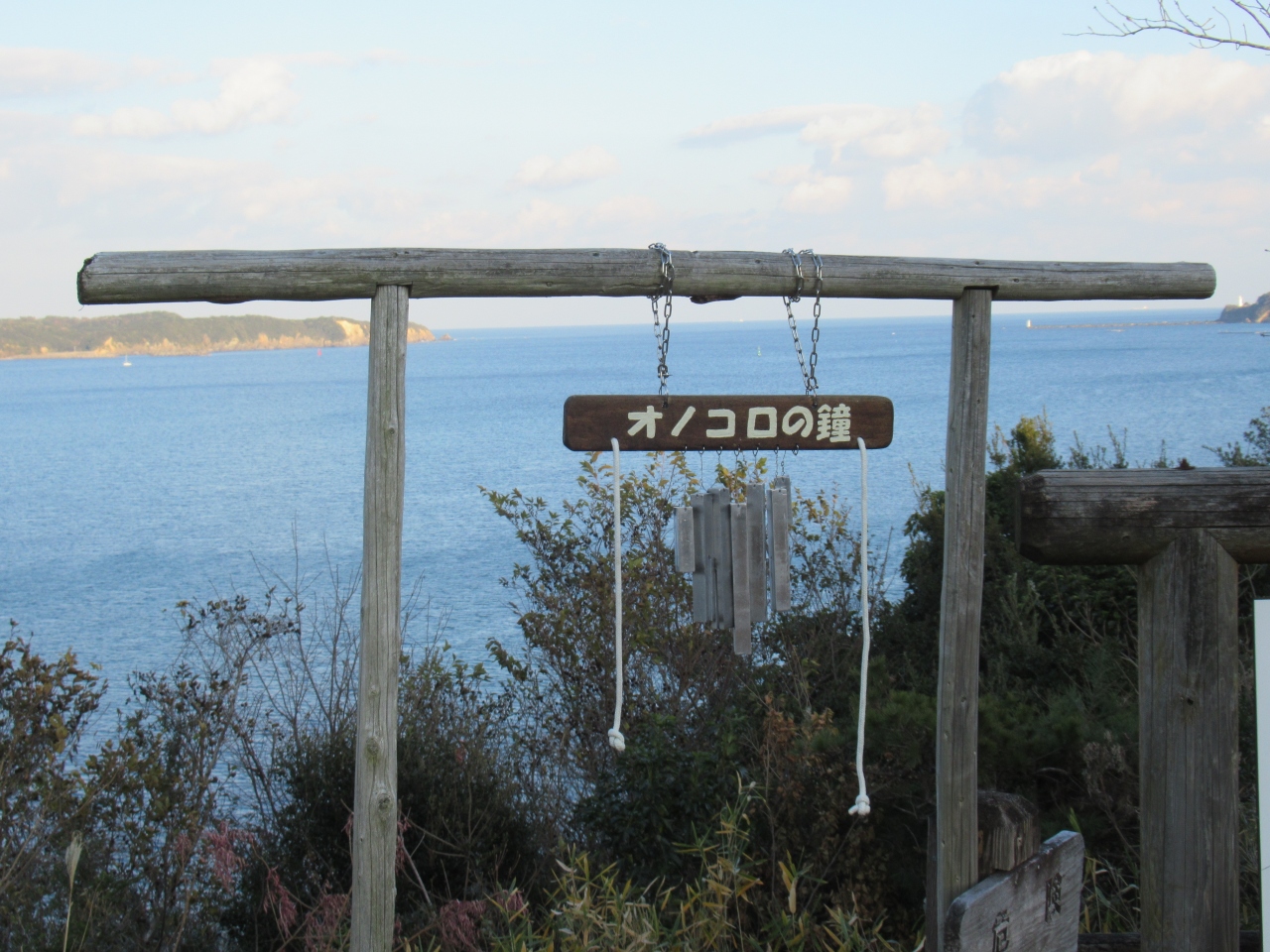 園地には緑の芝生が敷きつめられた広場、園地の中央には展望やぐの鐘の記念碑があり、展望台から的矢湾、太平洋、安乗埼灯台が一望できました。