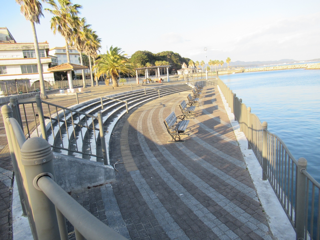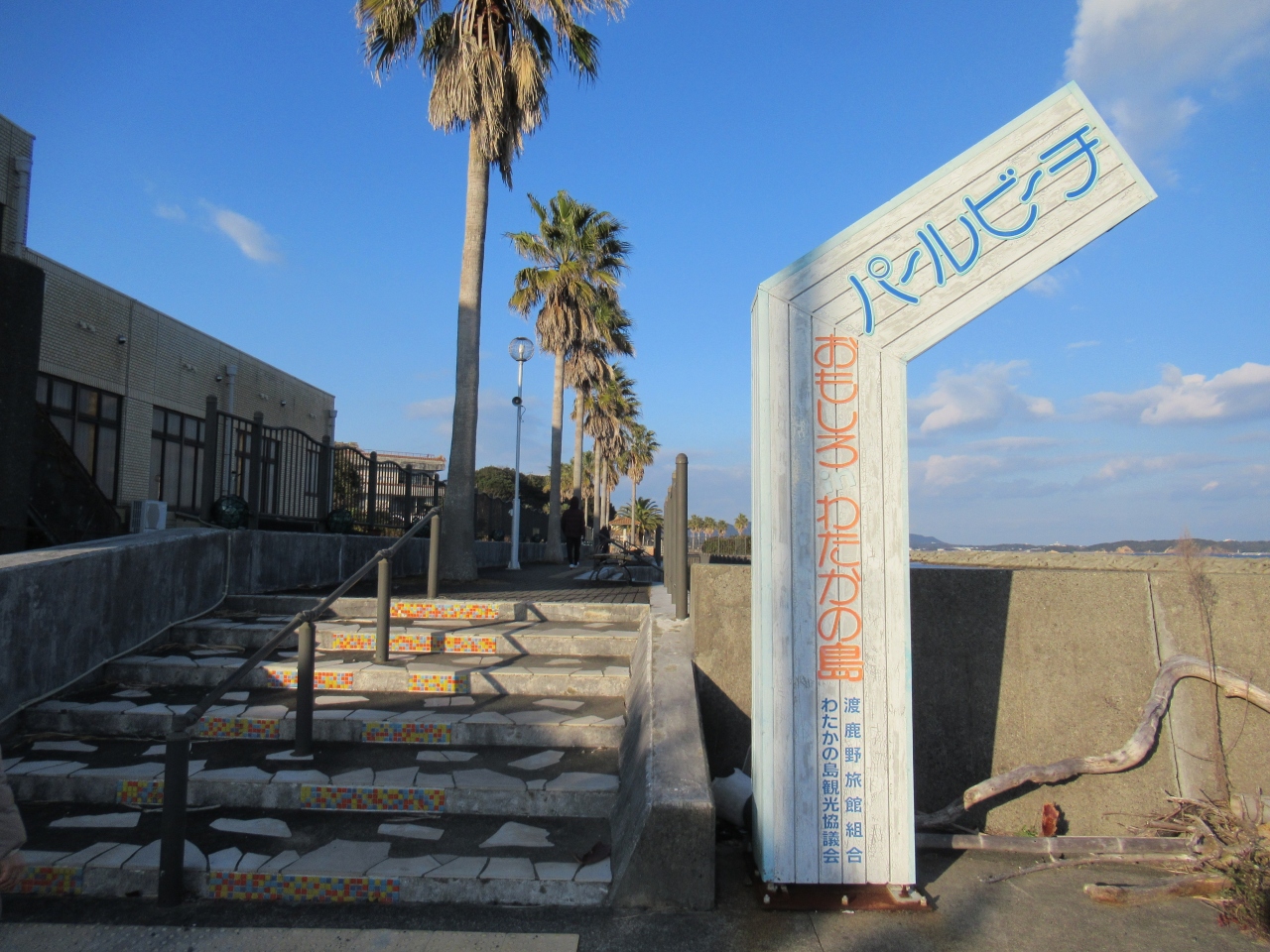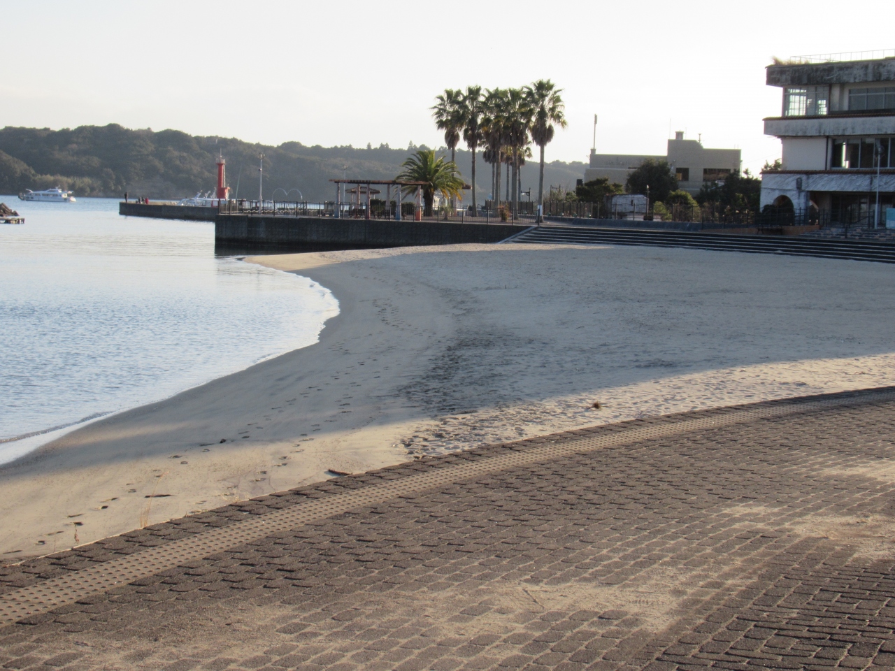 海岸沿いに遊歩道が整備されていて、遠浅の人工ビーチは波が少なく穏やかです。