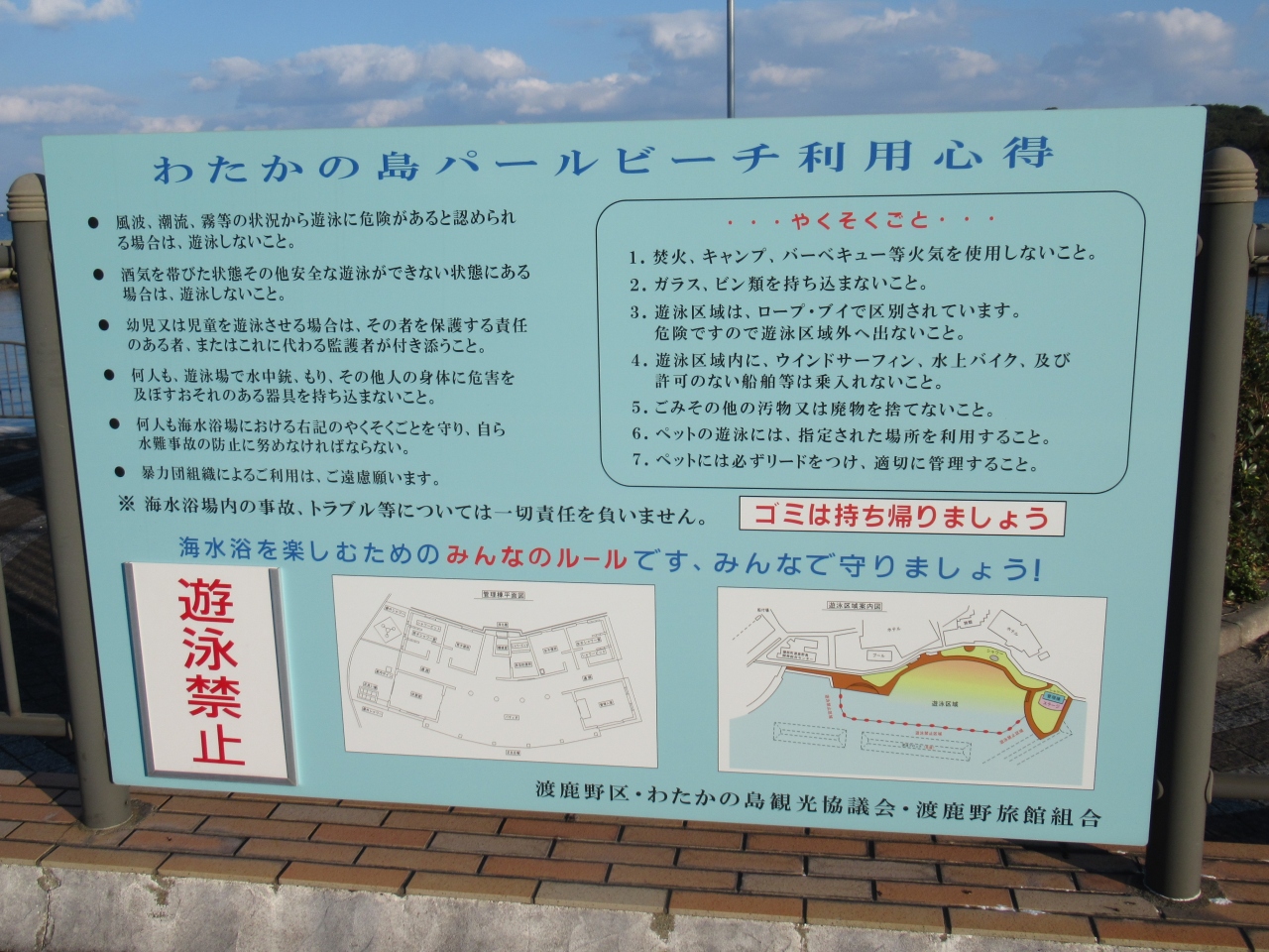 三重県志摩市の志摩スペイン村から2kmほど東に位置している渡鹿野島(わたかのじま)の南東側にある渡船乗り場の北側にわたかのパールビーチが広がっています。