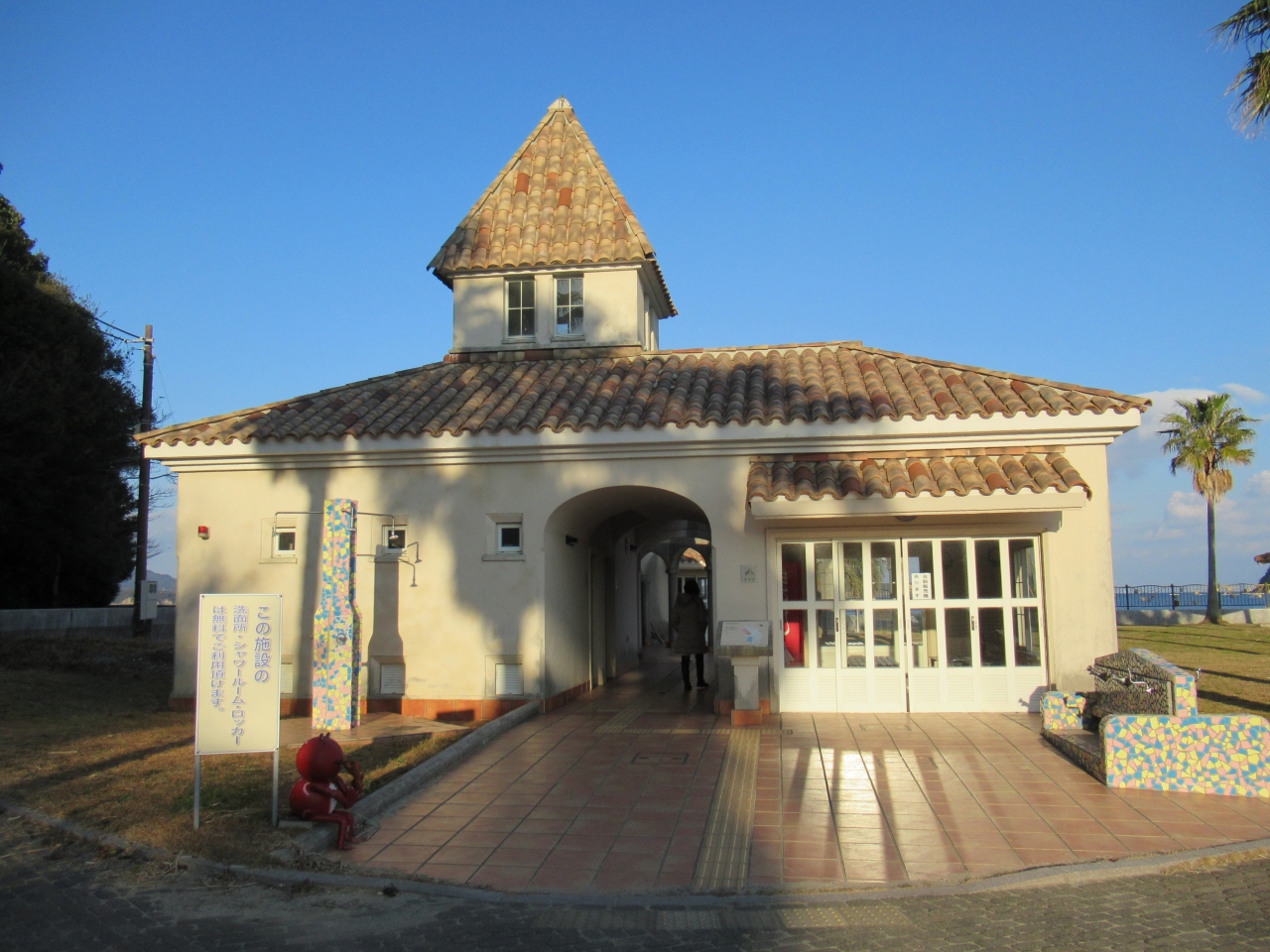 また、スペインをイメージする休憩所があり、ロッカー・シャワールームも無料で使え、多目的用もあるので年配の方や子供連れでも安心して使えます。